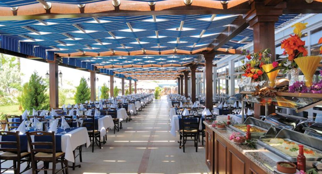 Был с семьей в начале июня 2014. Отель очень понравился! Нам был положен 2-х местный номер с видом на горы(на самом деле внутрь поселка- вид кстати приличный т.к возле побережья находятся арендные двухэтажные домики -виллы для богатых туристов из Турции) но нам дали с видом на море 4-х местный!!!!Вид я вам скажу-ого-го!!! ниже фото выложу.Питание хорошее-очень много блюд мясо и рыба+колбаски всякие( нам не понравились т.к. свинины в них нет). Фруктов и овощей-завались! про десерты отдельная песня- глаза разбегаются! ну а мороженное- дети оторвались по полной(по вкусу напоминает мороженое из макдональдса)+джемы ,мёд и всякие там сладости!Есть гриль бар у малого бассейна- мы узнали о нем только на пятый день- не доходили до него :). А там дают гриль-курицу и баранину. Наши соотественники некоторые узнавали о нем перед отъездом только. Есть полдник у бара! Еду с собой выносят- никто не проверяет!Мой ребенок даже колу носил в номер бесплатную ведрами!Напитки все бесплатно- не только юпи но и кола,спрайт и фанта-ЕДИГУН называется!Эти напитки во время открытия бара и ресторана- почти весь день-минус пару часов- юпи автоматы- круглосуточно!