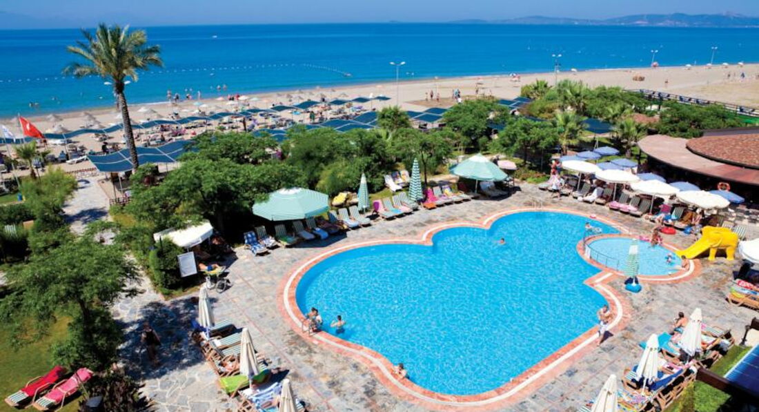 Отдыхали с семьей (Я, жена, дочка 4 лет) с 30.05.2015-13.06.2015. Первая проблема с которой столкнулись по приезду, а приехали в отель мы в 10:30 - заселение в 14:00. Долго мурыжили на ресепшн, - в итоге минут через 40 заселили. Вид в сторону гор и домов, не на море. Наш туроператор был MTS. Не советую ни кому брать у них поездки. Цены выше чем у местных турфирм минимум в раза 1,5. Мы брали баню, и поездку на яхте. Начну с бани. Привезли нас в Кушадасы в общественную баню, вместо обещанных 2 часов выперли через час, массаж 2 минуты максимум, потом стояли на улице минут 40 ждали машину. Постоянно опаздывают, вместо бесплатной обзорной экскурсии предложили поехать по 3 их магазинам с "суперценами" - сразу отказались. На лодке брали все включено с алкоголем, капитан сообщил, что все спиртные напитки за экстра плату, только после того как набрал гида - все выяснилось...Сама поездка интересна, но ничего сверх естественного, так как эгейское море красиво везде. Питание в отеле - отличное, блюда на любой вкус и цвет, спиртное местного производства бесплатно, фрукты, мороженое тоже. Для детей анимация - нулевая, площадка маленькая, у нас дней 10 - вечерняя анимация занимала 3 песни. Опять же, важный момент - для детей - очень мало русскоязычного народа. 70% французы, не много немцев, турков. За все время прибывания с нами было около 5 русскоязычных семей все из Беларуси. За покупками едьте в Кушадасы. Деньги меняйте в Гумульдуре банк Зират - самый лучший курс.Для девушек ищите магазин Амбар, он находится рядом с рынком, цены и качество оптимальные. Кожаные изделия - цены если поискать очень хорошие. Найдите на рынке магазинчик Rainbow. Не большой. Купил дочке дубленку 45 долларов, жене куртку 110. Все хорошего качества. Погода от +35-37 днем до +26-27 вечером. Море достаточно теплое, чистое, очень красивое. Бесплатный аквапарк с 5 дней в неделю, кроме суб, воскр. Обязательно попадите туда в 15:30 а маленький бассейн с искусственными волнами...В общем мы остались очень довольны, ложка дегтя - детская анимация.