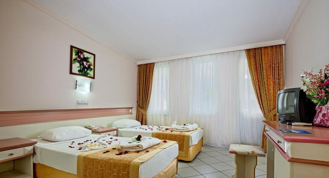 Отдыхали в августе 2015 г, очень понравилось, приехали в отель раньше времени заселения, наи одели сразу браслеты и отправили покушать, когда вернулись - нлмер был готов и нас сразу заселили. Номер был неплохой, чистый, с видом на горы как и хотели. Единственное- вместо двухспальной кровати и 1 односпальной получилось 3 односпальных, но для нас это не критично было. Еды было много, разнообразной. Эскурсии предлагает тез тур, но мы у них ничего не брали, выходили за отель и сразу куча местных предлагают экскурсии, брали у них, намного дешевле. Возле отеля есть остановка автобуса, на нем своим ходом ездили в анталию, там гуляли целый день, ходили по магазинам и на рыбок посмотреть. Ходили в хамам, понравилось. Одним словом- все замечательно. В этом году собираемся в сентябре опять .
