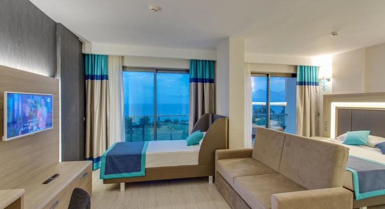 Отдыхала в отеле всего 4 дня. Бронировала через букинг номер с видом на сад. Дали номер с видом на море, на 3-ем этаже (хороший русскоговорящий парень на ресепшене). Вид - божественный ))). С территории отеля вообще отличная панорама. Номер такой современный в стиле хайтек, и очень тепло в номере, до Анталии была 7 дней в Стамбуле, там в отеле очень и очень холодно было (кондишн с обогревом не спасал).