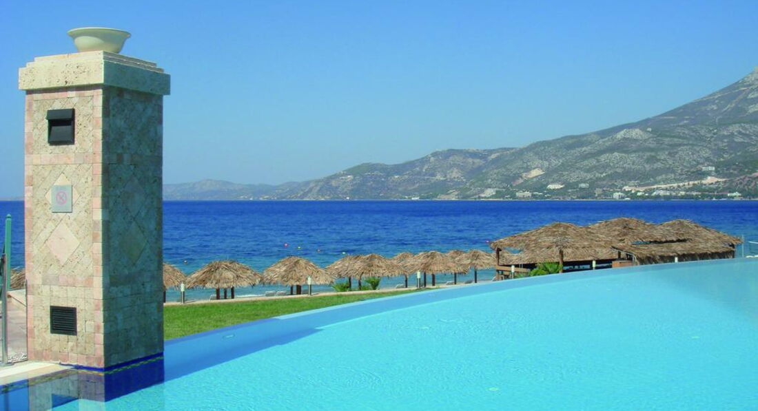 Розташування: м. Лутраки, за 100 км від міжнародного аеропорту «Ел. Венізелос», за 84 км від Афін.