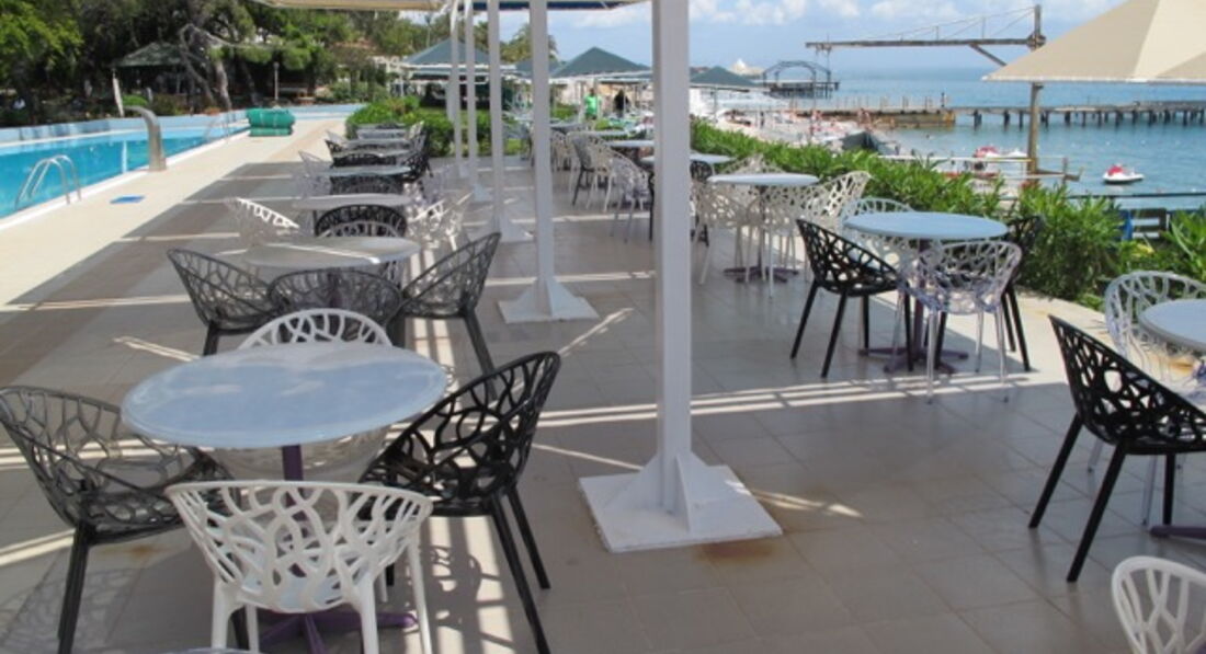 Ресторан в отеле расположен прямо не берегу, есть открытая и закрытая террасы, очень здорово завтракать, обедать и ужинать с видом на море. Еда вкусная, гриль каждый день на обед и ужин. Также огромным плюсом отеля является персонал: очень быстро все убирают, напитки в ресторане приносят, откликаются на любую просьбу.