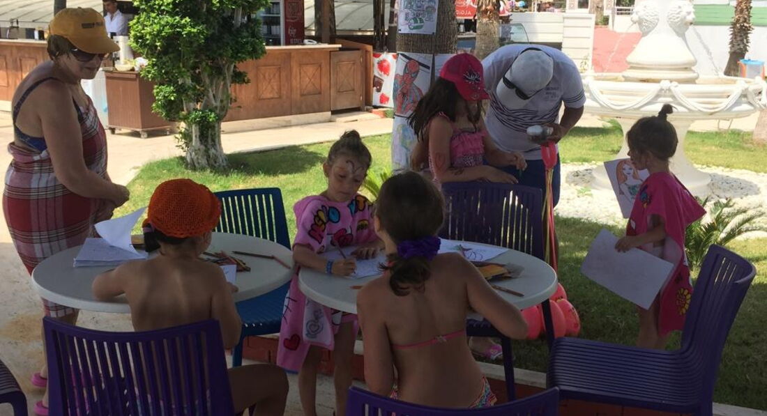 Есть детская площадка, вечером мини-диско - у меня ребенок до сих пор вспоминает и поет песни из анимации), особенное внимание уделяется русским песенкам - буратино, фиксики ну и арам зам зам)) куда же без него. Аниматоры веселые. Бетмен - молодой и Ричи - постарше, все время разыгрывают шоу на мини диско, дети смеются. Очень понравилось отношение к нашим русским туристам. Их там холят и лелеют и они на первом месте.Может быть потом что русских в отеле 90%. В 22-00 анимация для взрослых. Были и анцы живота, шоу барменов, шоу мистер рама, огненное шоу. Короче всё весело, не дурацкие шутки, а с расчетом на славянский менталитет. После шоу дискотека. Очень зажигательная. Я натанцевалась от души))