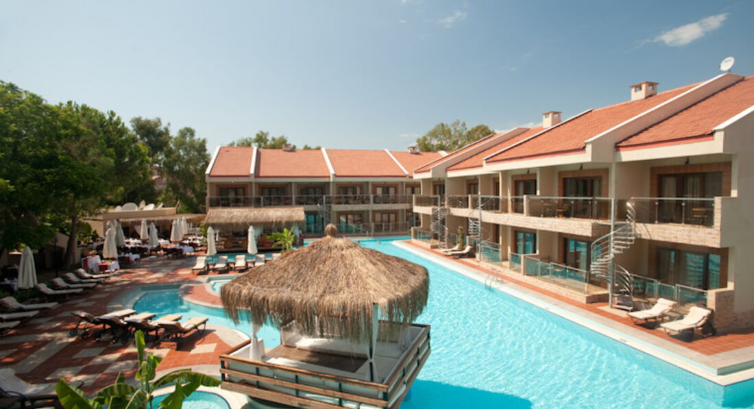 Отдыхали в этом отеле с 03.09.2016 по 14.09.2016. Очень долго выбирали отель и страну, Турция изначально пугала из-за обстановки, но подтолкнули знакомые которые за неделю до нашего выбора вернулись из Турана под впечатлением, им понравилось все, ну и мы решились. Летели из Внуково на регулярке на туркишах полет прошел отлично туда и обратно . Прилетели в 9 утра и нас сразу после завтрака разместили в номер. Номер чистый, всегда очень хорошо убирались и без чаевых. Территория у отеля большая и чистая, есть где погулять, завтракали и ужинали на открытой террасе, пока мы ели сын был на площадке игровой, или кормил рыбу в пруду, это очень умиляло, сын был в восторге он у меня любит рыбок. На море было чудесно, единственное что мне не нравилось отсутствие туалета, т.к. ребенок не успевал до него бежать и приходилось писать за душевыми кабинами и вход в море, галька, сам пляж песок, вместо зонтиков навесы, что очень было удобно. А еще на пляже с мая по сентябрь черепашки откладывают яйца, и можно увидеть как онивылупляются, мы ждали, ждали и тот самый день проспали) , сын конечно расстроился. Анимация - супер, встретили пару которая отдыхала там уже 3 недели, они сказали, что программа только один раз повторилась, что удивляло, так это то что всегда на вечернем шоу были приглашенные артисты, а не аниматоры, за наш отдых они выступили раза. Ребята молодцы. Детский клуб-5.