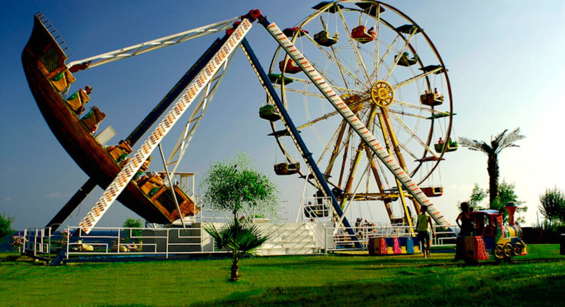 Територия отеля очень большая. Есть аквапарк, лунапарк. Каждый день старались попасть и на море, и в аквапарк, а вечером шли в лунапарк. Все было очень интересно. Есть на территории детская площадка, мини зоопарк.