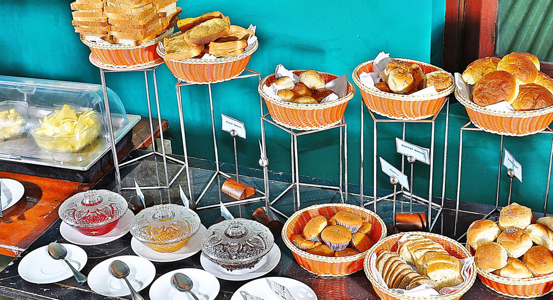 Приемлемо. Есть фрукты:бананы, ананасы, арбуз, папая. Джемы, масло, хлеб. Чай, кофе, молоко, хлопья, всегда два разных сока или милкшейк. Жарят омлет. Много местной блюд. Также в отеле действует система завтрак-ужин и All. В баре не разрешают пить свои напитки, цены на пиво, коктейли и сигареты ломовые: сигареты 1200 рупий-600р, пиво 500 рупий-250р.