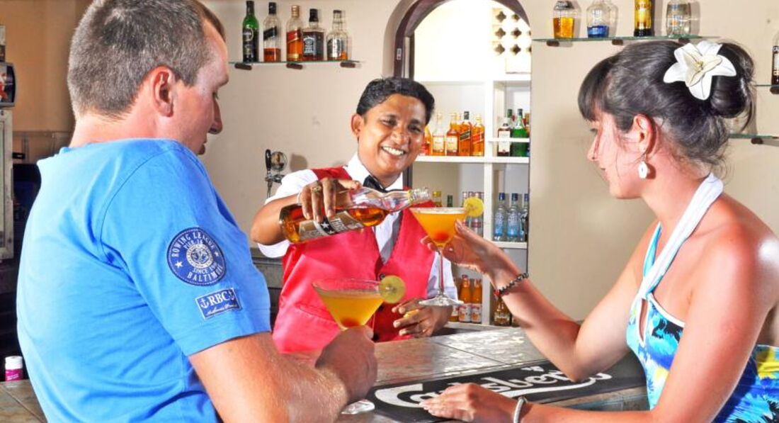 С аеропорта везли до отеля часов шесть ,пока всех развезли,хотя до отеля по карте пару часов езды.Пока привезли уже ничего не хотелось.Разместили реально в конюшне..Мебель старая с вырезанными автографами типа "здесь был Вася".После скандала ,который мы с женой закатили ,дали номер чуть получше.Хорошо что я купил в аеропорту местную Симку позвонил своему турагенту ,которая в свою очередь поставила на уши весь джоин ап (с её слов).Через некоторое время прибежал менеджер с рецепшна показал бунгало на берегу океана ,за которое он просил вначале по 50 баксов доплаты сказал мне НОУ МАНИ -ИТС ФРИ (типа не надо денег все бесплатно) и мы заселились в бунгало прямо перед океаном(10м) под пальмами .После этого отдых пошел как надо .Видимо я там большой шорох поднял,потому как в день отьезда прибежал этот чертила опять и сказал можете не выселяться до вечера -и опять денег не надо .Но я все таки по доброте душевной и подогретый отличным коксовым красным ромом Калипсо(попробуйте обязательно)дал ему 50 баксов за старания.А так питание средней паршивости с голоду не помрете если нет язвы желудка ,потому что все блюда практически в соусе КАРРИ очень острые .У одной женщины язва разыгралась на второй день.Так она ела вегетарианскую вермишель в платных кафешках.Вывод один могу сделать:С ними нужно построже иначе заселяют в хлев потом выбивают деньги за улучшение номера.На ресепшене есть вай фай не стесняйтесь при них звонить гиду или своему туроператору и жаловаться ,их потом быстро в чувства приводят.Мне гид потом расказывал что его подняли с самого ранья загнали в наш отель разыскивать меня и утрясать все мои проблемы.Я их правда сам утряс за 50баксов,на что он мне сказал зря отдал и так бы поселили в бунгало.А те кто был поскромнее в итоге за бунгало отдали обеды из трехразового оплаченного питания вместо доплаты.Для одного раза отдохнуть в принципе отель пойдет -все минусы с лихвой перекрывает океан. красота природы и обилие экзотических фруктов и напитков.