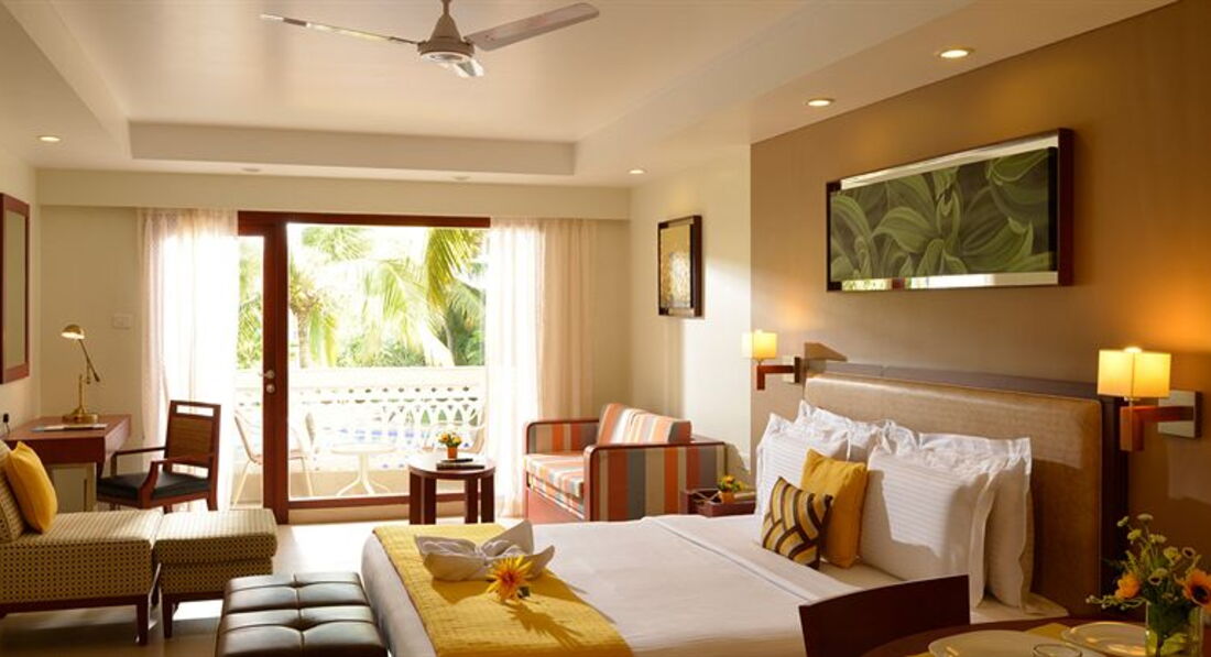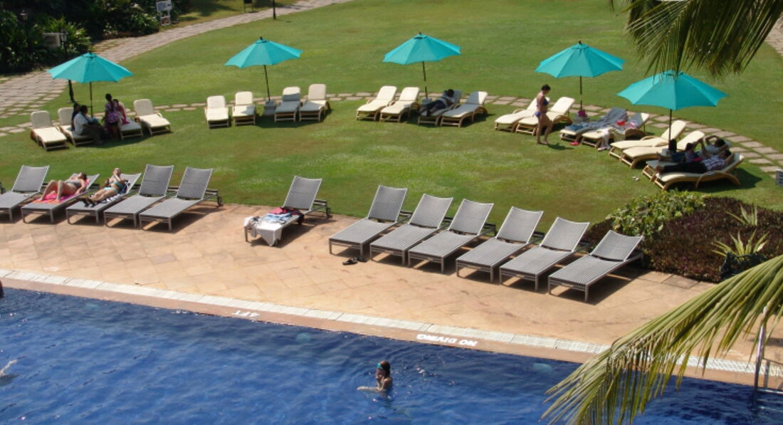 Отель понравился. Я ездила вдвоем с сыном 11 лет. Номер у нас был хороший, только после ремонта. В ванной , каждый день живые цветы, уборка каждый день. Из полотенец делали разные фигурки зверей, сыну оч. нравилось. Питание действительно не очень. У нас было питание все включено, хотя мы переодически питались в шейке на пляже. Для сравнения - По сравнению с турецкими 5* питание оч. скудное. Но надо понимать, что в юго-восточной азии вообще столько не готовят. Можно поесть в индийском ресторане. Там быбор блюд гораздо больше , чем в европейском.Мы там ели сладкое и мороженное.Территория отеля большая и красивая. Хорошие бассейны. Океан - просто сказка. Песок хрустит под ногами как снег. В отеле отдыхали много индийцев. Но они совершенно не напрягали, все оч. цивильно. На рецепшине никто не говорит по русски- это не совсем удобно. В общем понравилось. В гоа полетим еще раз. За 1 поездку, не все удалось посмотреть.Ездили на водопад и кататься на слонов- советую, не утомительно и интересно.