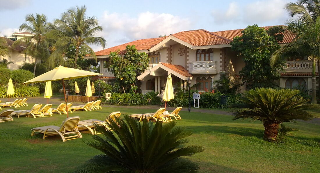 Отель с приятной территорией, небольшой, камерный. Много зелени, но что странно - не замечали запахов от цветов, может от большой влажности в воздухе. Пара бассейнов с детским отделением и двумя детскими горками. Почти все отдыхающие - индусы, поэтому по-русски пероснал и 2-х слов связать не может. Хотя если этот отель предлагают на российском рынке для отдыха, то на ресепшен могли бы выучить пару- тройку фраз по русски, типа "Здравствуйте, до свидания, как дела". А тут наше незнание английского накладывается на их разговорный язык, который представляет собой смесь английского, португальского и хинди. Благо повстречали в отеле работника, который работает по направлению клубного отдыха, называли его на наш манер Женя, так он неплохо по-русски говорит, какую-то информацию по отелю нам дал, а так бы и не узнали, что есть бильярдная, магазин сувениров и прочее. Отдыхали в конце февраля-начале марта 2009 года. Конец туристического сезона уже и море штормило и, видимо, работники отеля устали обслуживать. Мы были готовы, что приезжаем в отель в 10 часов утра, а заселяют по приезду около 13 часов дня, но ожидание оказалось томительным, поскольку были после бессонной ночи в самолете из-за пьяных туристов и в холе отеля стояла невыносимая жара несмотря на отсутствие дверей. Наш 6-летний ребенок вспотел так, что с волос капало. Нас отправили на завтрак за что спасибо. Видимо, пожалев нас после 1,5 часового ожидания дали номер, который подготовили первым. Он был крошечный -одна 2-х местная кровать, и места для дополнительного спального места нет, но нам было все равно уже. Поскольку если бы попросили поменять номер, то ждали бы наверно до следующего дня, уж очень они медлительны. То что индусы медлительны, это сильно сказано, они вообще тормозят, говоришь в номер нужно три полотенца, приносят два. Заказываешь напитки во время обеда, ужина, несут тогда, когда ты все съел и собирешься уже вставать из-за стола и никакие чаевые их не заставят двигаться. Один более или менее шустрый парень Августин, был барменом на 2 этаже основного корпуса. Вообще полотенец для лица у них не предусмотрено, будте готовы. А вот разные фигурки из полотенец крутили в номере мастерски. А вообще обслуживающий персонал, охранники довольно приветливы.