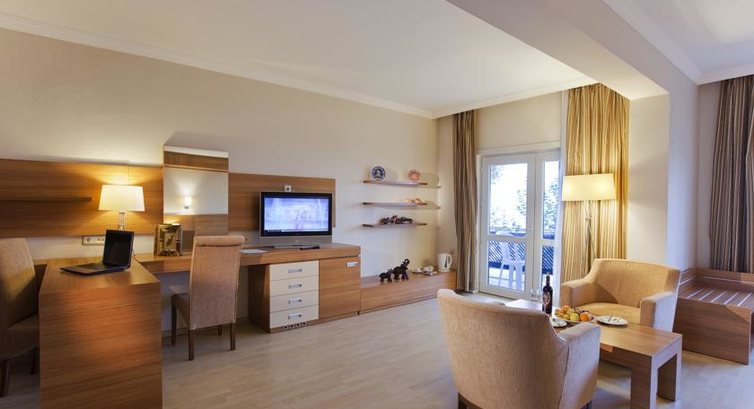 ПРиехали утром, разместили нас сразу до 14 часов в тихий и спокойный стандартный номер. У нас с собой был план отеля и мы показали в каком корпусе хотели бы разместиться. В номере все было все работало, а мелкие недочеты устранили сразу. В связи с большой территорией первый день не сразу ориентируешься, а потом как дома. По питанию нареканий нет, все было и много. Ежедневно проводились тематические дни: славянский день (борщ, пельмени), морской день (раки, кальмары, криветки и разнообразие рыбы). Для детей в отеле работают два детских клуба один стационарный в помещени с мини бассейном, детской площадкой и барчиком. Другой клуб для детей от 8 и старше дети с аниматором играют в дартс, пионербол и в различные подвижные игры. Вечером конечно мини- диско. Затем вечернее шоу, но средненько. Также вечером живая музыка, лазерное шоу, фейерверк. Кто не любит шумные тусовки можно уединиться или просто пройтись по территории отеля прогуляться. За территорией есть магазинчики, где можно купить сувениры и т.д. Весь персонал очень приветливый. Обслуживающий персонал даже если и не говорит по-русски всегда с улыбкой пожелают доброго дня или доброго утра. Посещали ресторан а-ля карт китайский 10 дол. с человека. По ужинали с удоволствием в тихой спокойной атмосфере. На пляже всегда можно было найти свободный лежак. Моторные водные виды спорта платные, а коноэ можно было поплавать в течении дня бесплатно. Также можно бесплатно пострелять из лука в тени в жаркое время дня. Отель супер, каждый найдет для себя развлечения по интересам, если кончно вы приехали отдыхать, а не искать себе проблемы. Отдых в отеле запомнился понравился, хотя в Турции не впервый раз. В этом году едим опять семьей.