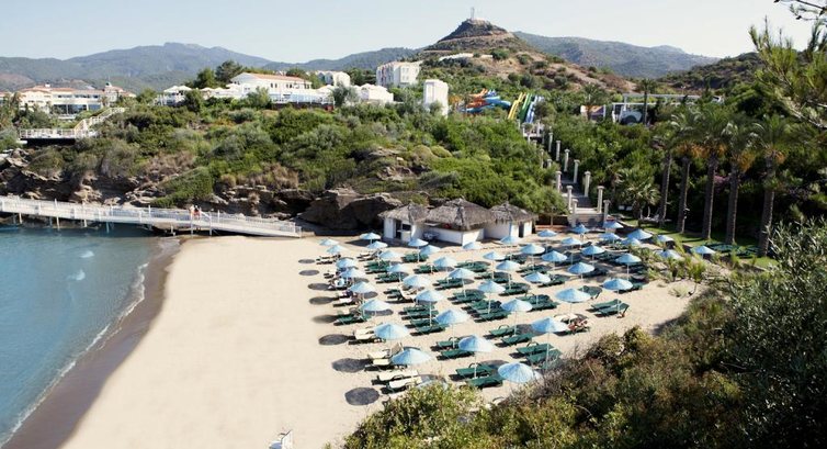 Жили в этом отеле во время командировки в Измир для изучения особенностей региона и осмотра отельной базы. Я-турагент и подобные командировки в моей жизни очень часты. Ведь надо знать, что продаешь и предлагаешь. Отель впечатлил! Номера в необычном стиле, начиная от отделки, заканчивая полотенцами в ванной. Таких не встречала в отелях. Очень радует душу такая изюминка отеля. Питание-подобное разнообразие я мало где встречала, а жила в разных отелях-от самых дорогих до очень скромных, в которых часы считали до отъезда. Сравнить точно есть с чем. Питание - морепродукты разных видов и способов приготовления, тоже самое с мясом, о гарнирах, овощах и фруктах молчу. Десерты-это отдельная зона в ресторане, которую стоит разыскать:) Стиль ресторана также необычный и очень уютный. Обслуживание выше всяческих похвал. Аквапарк - детская и взрослая зоны. Для взрослых горки останутся в памяти надолго)) Бассейн «инфинити». Пляжа два-один только для взрослых и второй - для всех. На пляже для взрослых тишина, покой и шум прибоя. Очень живописная бухта. Можно здесь же пообедать....по меню! То есть вы выбираете еду и напитки как в ресторане. Блюда выше всяческих похвал. Единственный нюанс в отеле-территория под наклоном. К пляжу спускаться, в отель подниматься. Пешком по жаре сложновато. Но ездят мини машинки, которые можно заказывать на пляж или в другое место как такси. Отель буду продавать смело и с большим удовольствием. На спрос влияет лишь отсутствие прямых рейсов из Харькова в Измир. Только с пересадкой в Стамбуле. Но для такого отеля, если позволяет бюджет, любая стыковка-просто небольшая пауза перед прекрасным отдыхом:)