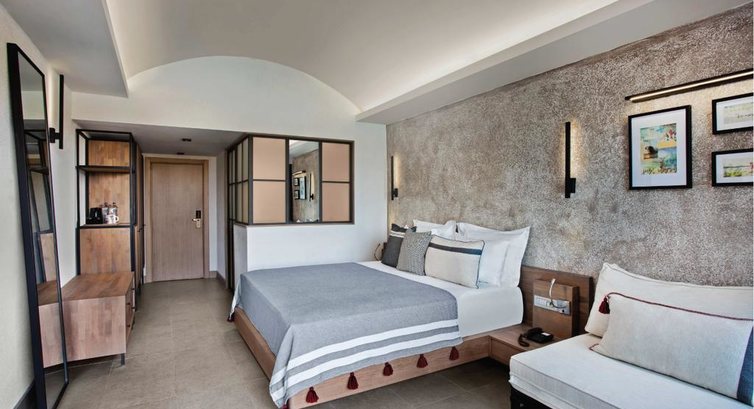 Дизайн отеля выполнен в стиле "эко-лофт" или "роскошь в простоте" Для создания отеля были использованы только натуральные материалы. Отель передаёт всю атмосферу Эгейского региона. Ресторан представляет собой "ярмарку" кулинарных изысков. Ценителям и любителям искусства будет интересно посетить творческие ателье с работами художников и мастерами искусств.