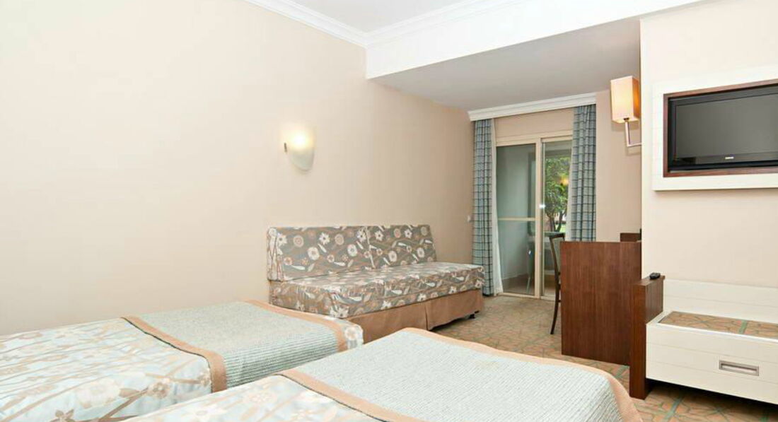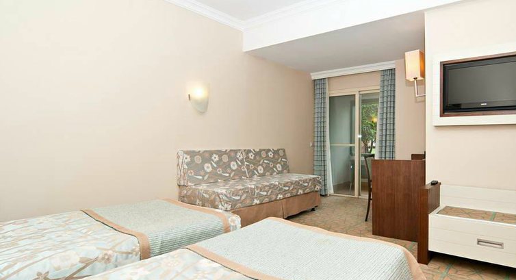 НОМЕР стандартный в блоке где тренажерный зал, рядом с главным рестораном (на карте обозначен цифрой 9), номер 6223. В номере была одна двуспальная кровать и 2 односпальных. Достаточно просторный, окна выходили на море, большой бассейн и прямо под окнами был хаммам. При заезде была неисправна дверь в ванной комнате, но даже не пришлось звонить на ресепшн, после того как пришли с моря, дверь была уже отремонтирована. Уборку делают хорошо, но как-то не каждый день, у нас один раз не прибирались 3 дня, после обращения вечером на ресепш, нам тут же поменяли полотенца, а на утро прибрались, пока мы были на завтраке. Еще хочется добавить, что в этом корпусе до 2 часов ночи особо не откроешь балкон, т.к. очень шумно - в отеле есть дискотека своя, но после 2 становится тихо. Общались с теми, кто из корпуса де люкс говоря у них не слышно, решили, что в следующий раз лучше там брать номера.