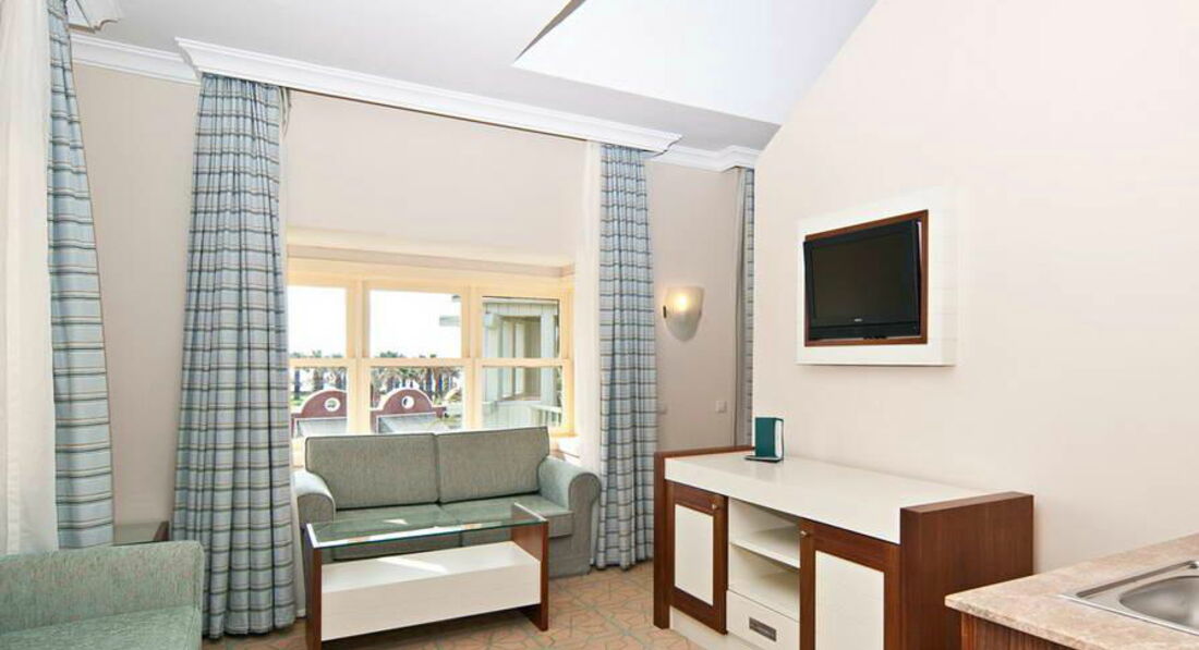 Первый раз решились отдохнуть с 10-месячным малышом)очень переживали,долго выбирали отель. Когда перечитали отзывы в меге,сразу решили ТУДА) летели IFly. Полет прошел замечательно и туда,и обратно.правда кормят совсем скудно) соевая сосиска и макароны)) приехали в отель в 10 утра,заселили сразу.проводили нас почти в номер( мы были с коляской-трансформером) и по пути выясняем что номер на 3ем(!) Этаже.я объяснила что с коляской без лифта, с дитем, не буду подниматься и спускаться(всё происходило без возмущений и спокойной тональности☺).наш провожатый сразу созвонился с ресепшн и решил этот вопрос за пару минут.при том,что чаевые мы еще не дали) конечно по заселению отблагодарили) было приятно) номер был 1317. номера хорошие! Есть российские каналы)мы до тв добирались редко. Территория: очень всё продумано,красиво.много дорожек, где можно погулять. Ходили в первый день в крытый бассейн,тк было ветрено,остались очень довольны)вода теплая,глубина 1.5 метра вроде. Этот отель больше подходит для пар с детишками)им там раздолье! По поводу анимации не могу ничего сказать,тк с дитем занимались сами,маленький еще)единственное что ходили всегда на детское диско и там девочки-аниматоры,конечно,старались)) море тоже очень порадовало! пляж чистый,песок.разделен на курящую зону и некурящую.обратила внимание что везде есть места для инвалидов.кухня бесподобная! муж большой привереда и то, всегда был огромный выбор блюд. Из фруктов всегда были бананы,груши,яблоки,дыни,гранаты,виноград.голодными не останетесь)и что самое интересное,обычно на 3-4й дни приедаетесь и не знаете что покушать...тут такого ни разу не было! Порадовал детский ресторан(с игровой зоной и тв с мультиками,ну и конечно же маленькими стульчиками-столами). Wifi бесплатно,ловит и на пирсе.сейф тоже бесплатно. если будут вопросы по отелю,пишите! Возможно что-то забыла))