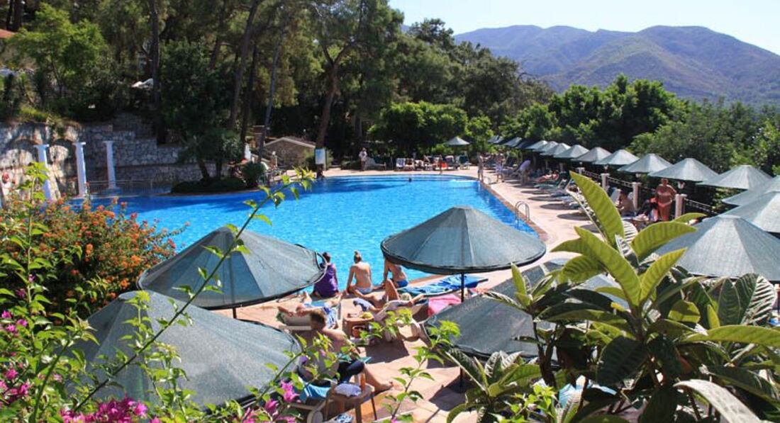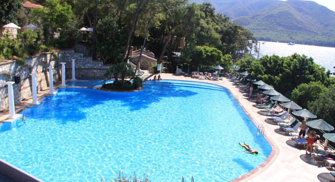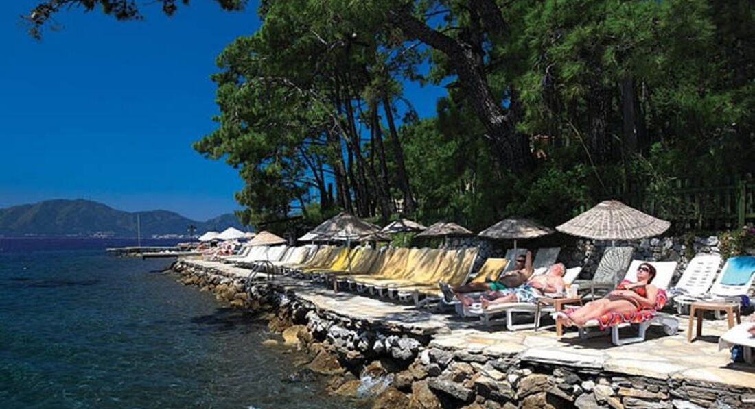 Отдыхала с подругой в этом отеле в конце июля. Отель находится в 12 километрах от центра Мармариса это 20 минут езды на долмуше. Отель больше семейный, чем молодежный. В период нахождения в данном отеле из 120 номером 44 были с детьми от 2 до 7 лет, в связи с чем и анимация приимущественно детская. Питание на слабую 4, но голодными не ходили. Те кто боиться живность вроде кузнечиков, ящерок, паучков, советую воздержаться от отеля так как их там очень много. А самое ужасное это бесконечное количество ступенек. В номерах слышимость такая, что слышно как моется сосед в соседнем номере. Убираются в номере каждый день и довольно хорошо. Если возникают какие то проблемы в номере, решают их тоже довольно таки быстро. Зато на территории отеля не жарко, вся территория находится под огромными соснами. Также в отеле есть собственный пляж, он находится через дорогу. Линия пляжа маленькая и вход не удобный. Пляжные полотенца отель не предоставляет , так что не забывайте брать свои.)))Анимация вечерами при сборе группы из 10 человек может отвезти бесплатно на бар стрит. В заключении хочу сказать что отель в принципе не плохой, но на любителя, молодежи там делать совсем нечего.
