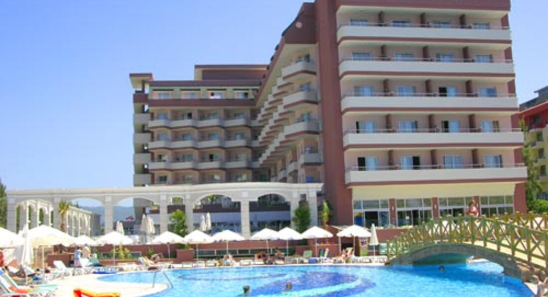 Доброго времени суток. В период с 25 августа по 5 сентября 2011 года отдыхала в указанном отеле. Место расположение отеля шикарное, он находится на берегу чистейшего моря и буквально утопает в сосновом бору. Какой там свежий воздух. Вход в море плавный, мелкая галька. Шезлонги, матрасы, зонтики есть, пляжных полотенец нет. Номера в отеле небольшого размера, мебель пошарпана, но меня это не смущало, так как я приехала не жить в номере, а только ночевать. Убирались в номере ежедневно, аккуратно, даже без чаевых. Отдыхающие в отеле были турки, русские, поляки, англичане. Питание приличное, но однообразное. Всегда были арбузы, дыни, сливы и виноград. Курица и рыба были всегда, говядина редко. Бассеин в отеле большой и чистый. Особое внимание хочу уделить анимации, это две русские девушки Аня и Кристина, турки Мурат и Эдди. Девочки молодцы, днем проводили аква аэробику, водное поло и степ. Вечером аниматоры проводили различные детские и взрослые шоу, а после дискотеку. Кто хотел поехать на Бар Стрит, двое из аниматоров возили нас туда на автобусе и также привозили обратно. Мурат говорит на нескольких языках, поэтому он самый незаменимый человек в отеле, поскольку был необходим для интернациональных вечеринок. В общем отель не плохой, если сравнивать с другими 3* и 4*, цена соответствует качеству. Если хотите большего комфорта - платите больше денег. Впечатление об отдыхе осталось только положительное, поэтому в октябре я собираюсь в этот же отель.