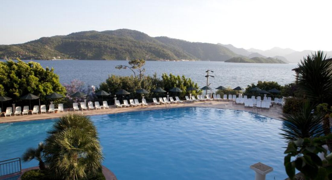 Отдохнули превосходно! Были в отеле в мае. Ездили с туроператором TPG, абсолютно никаких претензий по их части нет, организованы комфортабельные перелёты, удобный трансфер, информационное сопровождение. Первое, что отмечу - отель находится в живописном месте, где очень красивая природа, необыкновенный свежий воздух, пляж на первой береговой линии. Когда мы прибыли в отель, нас встретили очень приветливо, как будто с нами уже то лет знакомы) Было приятно) На рецепции милые и добродушные сотрудники. Номер был на первом ярусе. Вполне неплохой ремонт, просторно, светло, уютно. Убирают номера нормально, мусора не было, полы мылись раз в пару дней(нам чаще и не нужно было), смена полотенец раз в 2 дня. Сейф в номере бесплатный,кондиционер, ТВ, фен. Места для вещей очень мало. Питание удовлетворило. Завтрак стандартные, присутствует разнообразие. На обед давали суп, мясо, рыбу ), гарниры на выбор. Овощи и фрукты. Выпечка, десерты. Вечером тоже неплохой ассортимент. Территория отеля большая и вся в зелени, ступенек много, есть где прогуляться. Бассейн очень красивый, много удобных лежаков. Вид из ресторана на море - прекрасен!! В отеле нет анимации, но это не беда. Если хочется развлечений - можно смело отправляться в Мармарис и там для этого предостаточно мест. Хороший отель и впечатления от него тоже хорошие!! Рекомендую для отдыха!