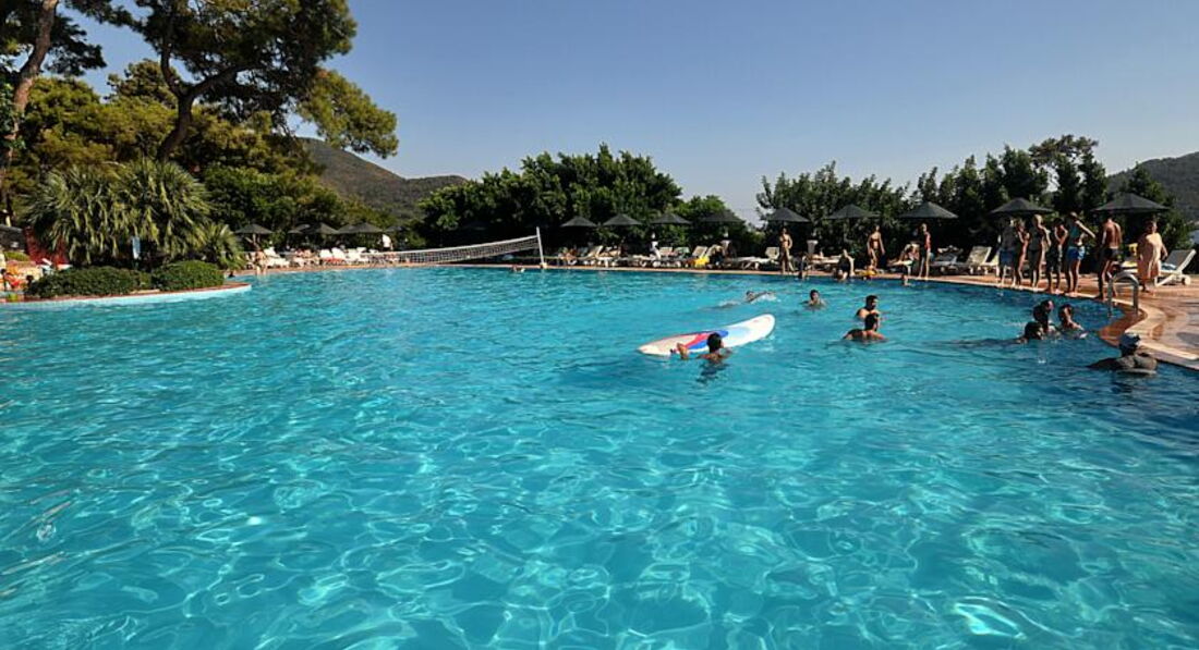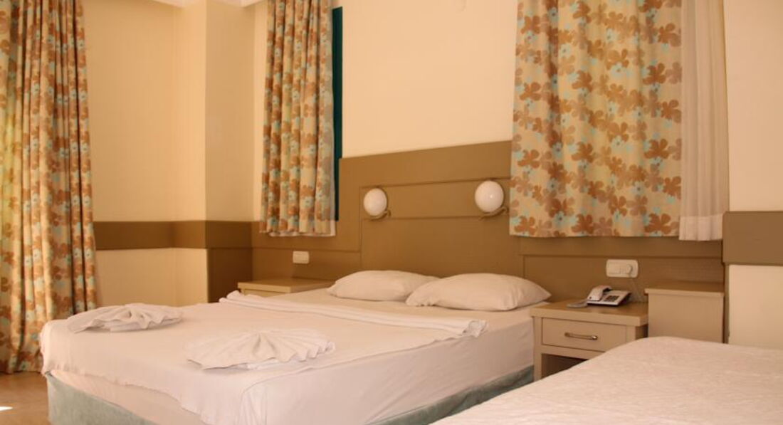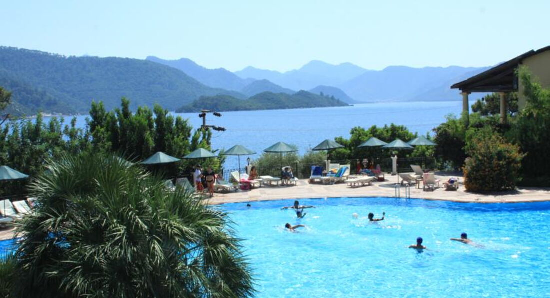 Отдыхала с подругами, хоть отель и позиционирует себя, как семейный. Нам было важно расположение недалеко от центра, в тихом месте. Тут отель себя полностью оправдывет. Территория зеленая и уютная, очень красиво. До Мармариса каждые пол часа от отеля ходят маршрутки, добираться всего 10 минут. Пляж собственный через дорогу. Вставать пораньше и занимать лежаки не приходилось, т.к. несмотря на то, что пляж небольшой, всегда хватало места. Существенные минусы - это еда, персонал, который не всегда добросовестно относится к работе, а часто попросту забивает на все и ОГРОМНОЕ количество ОС, которые буквально кишат в "ресторане", то есть посидеть и спокойно поесть не получается. Еда - это отдельная тема. Я не ехала в отель удовлетворять свои гастрономические пристрастия, но тем не менее была удивлена однообразию и невкусности блюд. Одно и тоже меню ежедневно на завтрак, обед и ужин. При чем здесь не слышали о том, что такое турецкие сладости. Номера. Мы жили в трехместном номере и вещи хранили в чемоданах, т.к. элементарно не было места их куда-то деть 3м взрослым девушкам :) могу рекомендовать этот отель только тем, кто не делает ставки на питание и обслуживание, а хочет просто отдохнуть в тихом и зелёном месте.