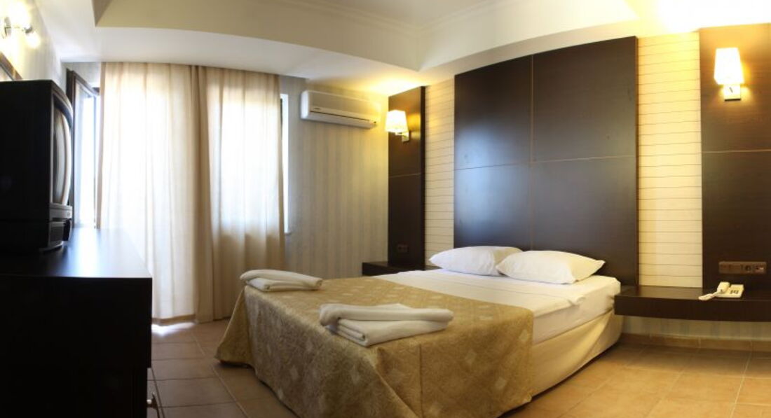 Отдыхали в отеле в конце августа. Ездили от тур.фирмы Пегас туристик. Приехали в 2 часа ночи, сразу заселили в номер на нулевом этаже, нас было двое, номер оказался 3-х местным, одна большая двухспальная кровать и рядом раскладушка, очень тесно, холодильник не работал, душевая комната была тоже очень тесной, вся мебель старая, пол выбитый местами, пахло плесенью. Мы сразу же обратились на рецепшн, где портье плохо понимал по-русски и предложил подойти к сменщику в 9.00. Номер нам поменяли без проблем и доплат. Номер оказался в новом здани, где малый бассейн, очень просторный и тихий. Горничная очень улыбчивая и приветливая женщина, убирала ежедневно, меняла полотенце и белье ра в 2-3 дня, не зависимо от чаевых. Анимацию мы так и не видели за все время, хотя нам говорили что она была каждый день и очень неплохая. Просто мы были далековато от большого бассейна в главном здании, а аниматоры не рекламировали свои выступления, не было ни одного публичного анонса в ресторане или на пляже, т.к. есть сравнения на других курортах в частности Алании, аниматоры ходят представляются, раздают рекламки и предлагают прийти на вечер, вообщем анимация не назойливая, а хотелось бы повеселей. Питание хорошее, но однообразное, с утра хотелось бы каши или горячих блинчиков, были только яйца 2-х видов, сухие хлопья, мюсли с холодным молоком, единственное что радовало это булочки, различное варенье, мед, масло. Обед и ужин были по разнообразней, пища не жирная, много печеных овощей, различной зелени, мясо, рыба, гарниры. Супы были однообразны и не вкусные. Отельные гиды приветливы и общительны, советую ездить на экскурсии именно от них, это будет и безопаснее и качественнее, т.к. у них очень хорошие гиды, отличные водители и привилегии крупной тур.компании. Например: мы ездили на экскурсию в Эфес, где был заезд в домик Девы Марии, нас отвезли туда в первую очередь, не было народа и мы прекрасно все не спеша посмотрели, а затем когда вышли пошла волна туристов и образовалась огромная очередь. Так что если хотите комфортную и безопасную экскурсию пусть дороже. зато качественнее и надежнее, в конце концов всегда будет с кого спросить. Персонал отеля очень приветливый, всегда улыбались, рады были видеть. Официанты и бармены работали хорошо. Пляж очень хороший, чистый, постоянно в течении дня убирался, вода в море чистая, но прохладная, как нам пояснили из-за различных подводных течений. Песок очень хороший. Не глубоко было, очень хорошо для тех кто не умеет плавать и для детей, не образовывалась толпа на берегу все равномерно распределялись и было просторно. Очень красивая природа, комфортный климат, жара переносится легко. Можно свободно гулять как по Ичмелеру так и по Мармарису не боясь заблудиться. Очень советую. в любом отеле будут недостатки, главное воздух, море, пляж.