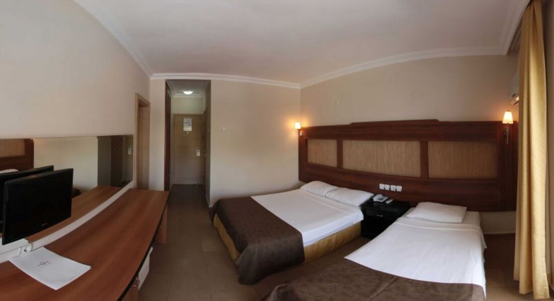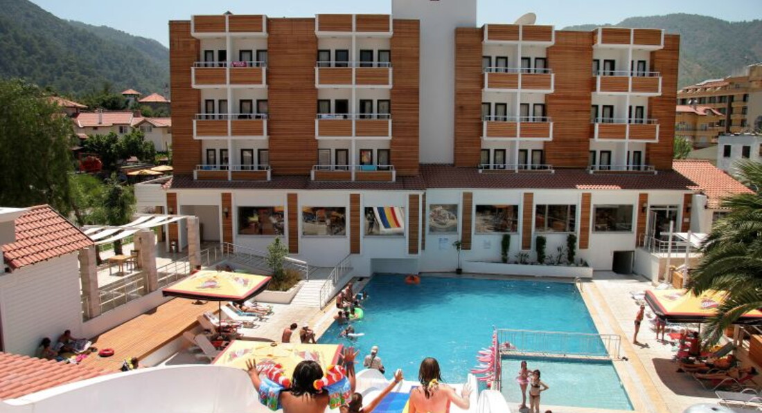 Летали семьей муж двое детей 8 лет и 9 месяцев и мама, бронировала тур самостоятельно на 10 ночей, цена 81000, номер был Family. Итак летали как и все Пегасом, отправляет в отель только он, авиаперевозчик Уральские авиалинии, минус перелетов в том, что вылет был 15.15 из Москвы и в отеле были около 23, обратно вылет 7.55 из отеля забрали 2.40, рейс задержали на час. При заселении многих людей у кого была бронь на стандарт, заселяли в промо, со словами утром подойдете переселим), заселение было 25 человек и большинству дали не те номера которые были забронированы, скорее всего это было связано с тем, что бы потом с благодарностью люди подходили) т.к. переселение было до 3-х дней (общались с туристами), наверное это минус, но нас не коснулась. НОМЕР не смотря на то, что он семейный очень маленький, не смотря на то, что он двухкомнатный, всего 2 маленьких шкафа без полок но с кучей вешалок шкафа, не все вещи особенно малышки можно повесить, кафель на полу (очень и очень грязный) тоже для ребенка не плюс, но она у нас там и не ходила, в номере только спала. Холодильник маленький и не морозил совсем, брали питание с собой переживали, что испортится, ключ не вынимали, что бы постоянно холодильник работал. ЕДА конечно желает оставлять лучшего, голодными не были, но завтраки совсем уж плохие (яйца вареные, яичница (готовят на улице) колбасятина их (мы ее вообще не ели), мюсли, хлопья, овощи (помидоры, огурцы, салат, капуста), грибы, но с утра они не шли как-то), хлебушек (в тостер и с медом нямки) и каша рисовая, была пару раз кислая(. Но кофе с аппарата конечно плюс. В обед и ужин наедались и выбор был и вкусненько. Очередей не было, это плюс маленьких отелей. Персонал отеля весь очень уважительный и внимательный. Кстати мини-диско проходит в Территория отеля нам понравилось, маленькая, но уютная, домашняя такая, на территории 3 бассейна 3 бара, напитки: пиво, коктели, раки, минус маленькие стаканчики. До море идти 3 минуты, нас не напрягала прогулка, пляж песочек, вход отличный и очень теплое море, да мелко, но для детей это хорошо, но если уйти левее там можно и поплавать. Полотенец нет, мы брали из номера, попросили уборщицу дать нам дополнительные полотенца. Ходили с мамой в СПА при отеле, очень понравилось, спасибо. Ездили в Мармарис на маршрутке, проезд 1 $ или 3 лиры, что значительно дешевле, вообще цены все в лирах, поэтому мы меняли доллары на лиры, на будущее учтем, будем сразу лиры брать и удобнее и дешевле. В целом и отель оставил положительные эмоции, мы ехали не минусы искать, поэтому всем остались довольны. Природа просто шикарная. Если есть вопросы, задавайте отвечу.