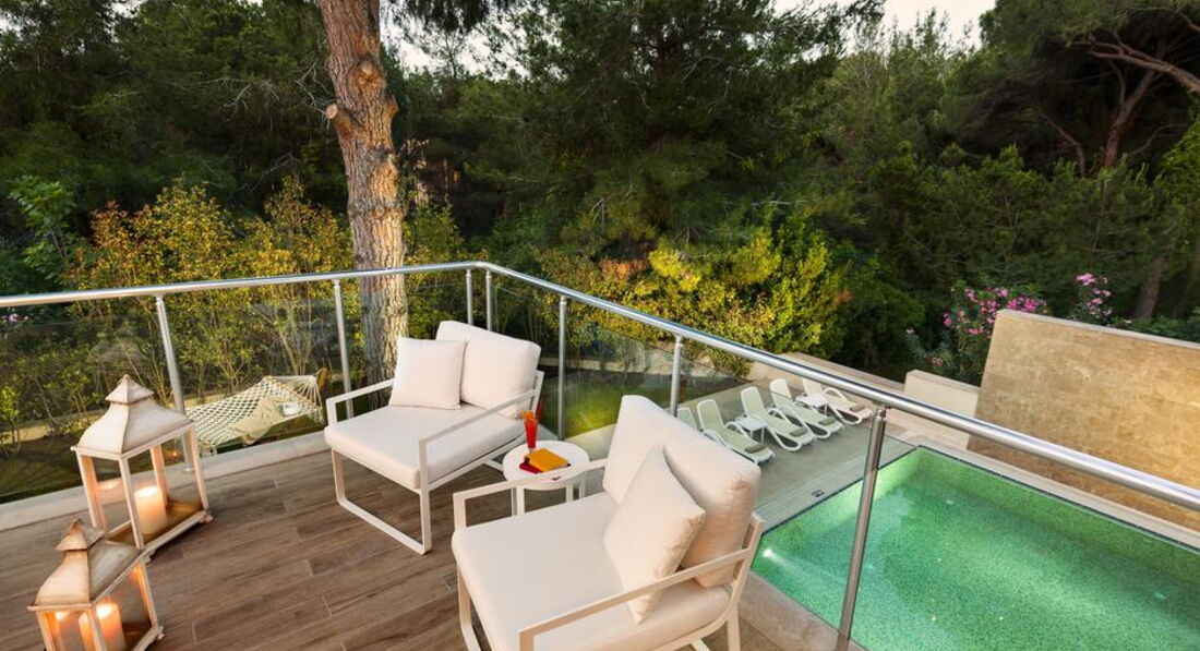 9 дворівневих Villa Prive (з окремим басейном усередині приватного саду вілли, вітальня з обідньою зоною та кухнею, окремий павільйон на пляжі, макс. 8 чол., 264 м2);