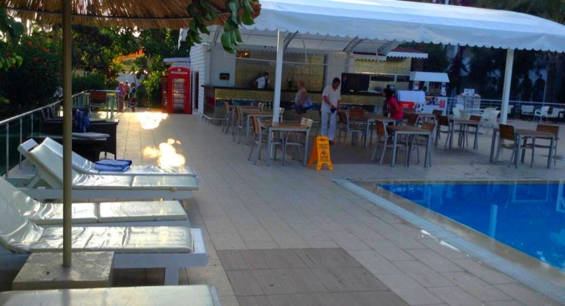 Добрый день! Отдыхали с парнем в июне,начале июля 2017г. Полетели впервые в Турцию. Прочитали отзывы об отеле,есть всякие, ну естественно понятно,что как дома нигде не будет. Думали,что плохие отзывы пишут привередливые люди, пока сами не убедились,что это КЛОПОВНИК. Приехали мы в 10.00,уставшие, с надеждой что сразу заселят. Сказали подождать на ресепшене(если это убогое место можно так назвать), предложили перекусить в "ресторане" и началось................. заходим мы в "ресторан" и капеццц, столы грязные, вилки немытые, мухи летают, сразу они едят еду, а потом люди.А есть вообще нечего, заветренная колбаса, кислые макароны, соленый сыр,я взяла себе салат из огурцов и помидоров, думала хоть перекушу,ни тут то было,в салате сидел клоп..........жесть............ из съедобного было только варенье с батоном.Я все понимаю, но заплатить деньги за отдых и поесть варенья с батоном,ну это не в какие рамки не укладывается. Ладно,дальше, заселили нас в "номер",это вообще караул.........постель грязная, туалет немытый, вид с окна-свалка.Попросили нас переселить,на что ответили,что номера на 3 этаже платные. Пришлось жить в этой конуре. Что касается моря,одни камни,что в море,что на берегу,босиком не пройти, шизлонги всегда заняты бабулями, отдыхающми в этом отеле, молодежи там вообще нет, это отель для пристарелых. В общем,рассказывать много чего можно,но не хочется вспоминать,это не отпуск был, а кошмар. Не поверите,с первого дня безумно хотелось домой.