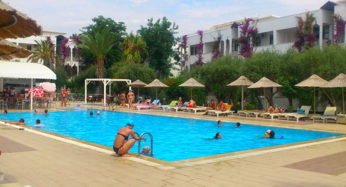 Давайте расскажем все по порядку: прилетели мы и в первый же день были огорчены приемом, заселение было не сразу, пришлось ждать около 3-х часов, но это не минус отеля, номер предоставили около часу дня, просто мы были очень уставшие и утомленные дорогой, что все воспринималось не так как хотелось. Номер был у нас маленький с одной 2-х спальной кроватью и своим сан.узлом, но без балкона и сушить бельё было негде, телевизор и кондиционер работали и даже была всегда горячая вода. Да, первый день для нас был каким-то испытанием, мы старались не замечать на плесень в душевой кабине и ломаную мебель в комнате, а когда первый раз пообедали в столовой и заметили небольшую антисанитарию (грязные тарелки), то совсем слёзы стали наворачиваться на глаза. Да! это был только первый день, когда мы видели все минусы отеля, НО, стоило нам выйти из номера к бассейну, на пляж и на территорию отеля, мы обо всем забывали. АНИМАЦИЯ! ОБСЛУЖИВАЮЩИЙ ПЕРСОНАЛ! вот чем должен гордится этот отель. Я была поражена встречей и вниманием всей анимационной командой. Алекс, Муки, Катя и Маша - ВЫ СУПЕР!!! если бы не Вы, отпуск был бы не таким ярким, впечатляющим и незабываемым. Отдельное спасибо хотелось бы передать барменам отеля, Андрею (за его улыбку и внимание) и Салиму (за его непринужденное насвистывание, которым он всегда поднимал настроение). Вечерами в этом отеле анимационной командой проводились различные концерты и конкурсы после которых просто животы болели от смеха. такого мы еще не видели, чтобы команда отдавалась публике на 300%. Мы были в Турции не первый раз и анимация нас всегда отталкивала, но после знакомства с Алексом, Муки и девочками, теперь мы будем выбирать отель по принципу где они работают, т.к. повторюсь если бы не эта команда, наш отпуск был бы не таким ярким. Всем советуем побывать в этом отеле, особенно молодым семьям и с детьми. Здесь есть все: игра в дартс, водная гимнастика, водное поло, конкурсы в бассейне, волейбол, настольный теннис,степ-аэробика, пенные вечерники, дискотеки на пляже и вывозные в Аланию и все это проводится под зажигательною музыку в течении всего дня. Если вы еще думаете, мы советуем вам и всем всем побывать обязательно в этом отеле, вы не пожалеете, а мы жалеем только об одном, что не имеем возможности остаться там навсегда! СПАСИБО! СПАСИБО! и ещё раз СПАСИБО всему персоналу отеля и анимационной команде! Мы вас любим, целуем, скучаем и надеемся увидеть вас снова!!! Желаем вам терпения, легкой работы, побольше отдыха и счастливых туристов!