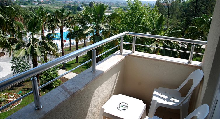 Что насчет номера. Я жила в стандарте, в 7 корпусе, окна выходили на дальний бассейн и амфитеатр, под окнами почти никто не ходил, а шум от амфитеатра мне не мешал, так как раньше 12 ночи я не ложилась. Да, если закрыть балкон и окно в ванной, то шума практически не слышно. Сам номер мне понравился, большая кровать, диванчик, трюмо, шкаф, какая-то лавка у дверей, прикроватные тумбочки, хорошая ванная комната с душевой кабиной, телевизор с двумя русскими каналами, маленький холодильник. В мае ночью было холодно, но с началом июня номер прогрелся, но полы очень холодные всегда. В номере много мест для хранения, уж на что я привезла много барахла и то свободное место осталось. Очень мне понравилось в тумбу под раковиной убирать грязную одежду, которую сразу лень постирать.