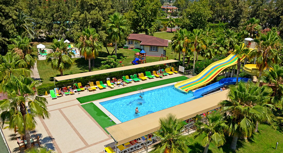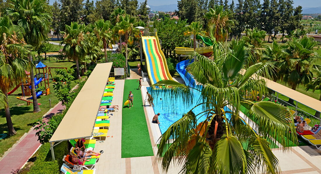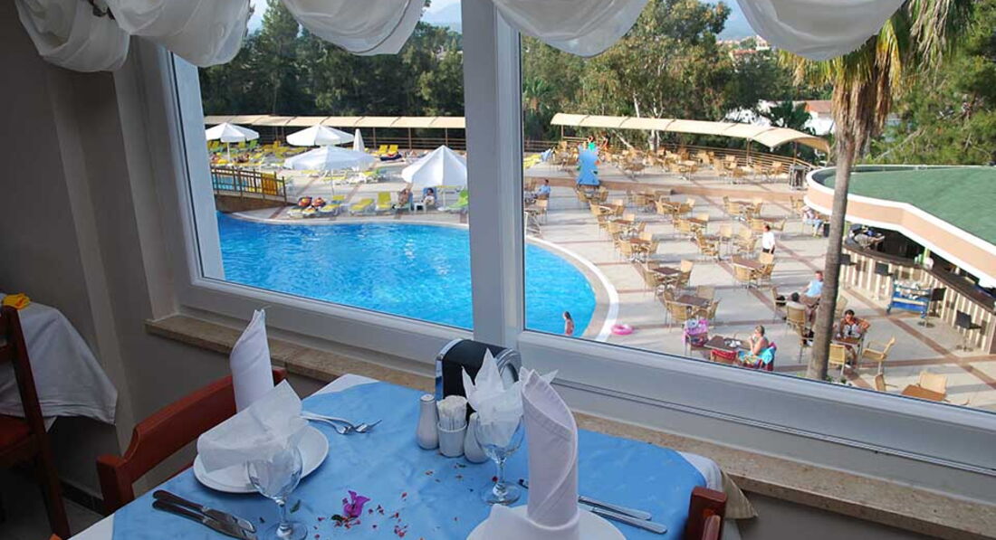 Начну с размещения.Приехали с друзьями,с другой семьей.Изначально попросили номера рядом,они пошли на встречу.Поселили в самый ужасный 13 корпус.Как оказалось в 13 селят только русских.Так как администрация считает,что мы и в стареньком поживем,а немцем все самое лучшее.Во-вторых, еда.Когда мы приехали было все очень вкусно: рыбу целую давали и супы были вкусные и зелень свежая.Но потом...выбора практически нет.НА обед 6 открывающихся подносов,три из которых рис,вермишель и картошка фри.Детского меню нет.Точнее оно есть,но это явно не детское.Так очень острые соевые котлеты,нагетсы жареные,и стабильно очень кислая подливка.Салаты нарезанные не берите,даже если выглядят неплохо.Они режут туда все ,что не съедено на завтрак ,на обед или даже вчерашнее.Так еще иногда с противным майонезом. Конечно есть и плюсы,бывает очень вкусная говядина,рыба,иногда делают пельмешки.Турецкие сладости тоже вкусные,но желе невозможно есть.Оно стоит для новичков,достаточно попробовать одну ложку,чтобы никогда его больше не брать.В баре коктейли платные. В-третьих анимация.Она есть,но ходит так чисто по времени собирает на игры.Больше её не видно,не слышно.Вечерние шоу интересные только тогда,когда приезжают выступать другие группы.В миниклубе не следят за детьми.Не записывают родителей.Очень неудобное расписание детских горок.Открываются в самое пекло.Детки все обгорают.В-четвертых,пляж.Идти 5 минут.Но по жаре тяжеловато.Их автобус ужасно душный и старый,непонятно как он ездит. Так еще он практически не ездит.Когда хочет уедет,когда хочет приедет.Пляж хороший,чистый,море мелкое,нужно заплывать подальше.Для детей идеально.На пляже в 14,00 дают мороженное в упаковках,оно вкуснее чем в отеле.В-пятых,вайфай. Его нет.Это просто катастрофа.Помимо того,что он только в лобби подключен,так он еще и не работает.Очень много жалоб было.Может что-то исправили.Этот отель стремиться получить HV2 и по этому сделали а ля кард. Выглядит конечно смешно.Они накрывают столы там,где утром был снек бар,с пластиковыми стульями,столами.Сверху навес как в детском лагере.НО при всем при этом еда хорошая.Мы ходили в рыбный,на выбор пикша,морской окунь и лосось.Конечно мы взяли лосось,порции были просто огромные и очень вкусные,перед основным блюдом нам принесли закуску в обжаренном тонком тесте салат и полит сладким соусом.На вкус очень вкусно,похоже на шаурму.И на десерт мороженой с халвой,фисташками,сливой и еще чем-то.Тоже очень вкусно.В ресторане подают хорошее вино,не такое как в обще столовой.
