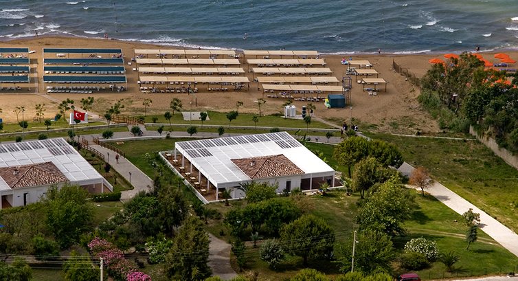 Пляж: власний, піщаний, довжина 50 м, кабінки для перевдягання, душ; пляжні рушники на пляжі та біля басейну - платно; парасольки, шезлонги та матраци на пляжі та біля басейну - безкоштовно. Шатлбас на пляж - безкоштовно.