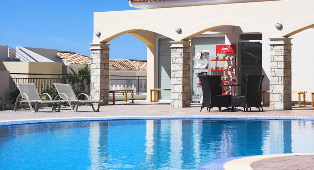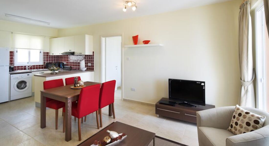 Апартаменты для тех кто любит путешествовать в чужой стране а не сидеть на месте. Отель расположен далеко от моря и центра города , ходят ежедневно от отеля автобусы, по времени не подскажу т.к. в первый же день взяли на прокат машину(кстати цены приемлемы 30 евро сутки джип сузуки джими плюс 300 евро депозит) На ресепшене Вам помогут решить все вопросы с транспортом.Территория небольшая,состоит из домиков для проживания,одного ресторана и двух бассейнов. Турецкого сервиса Вы здесь не найдете,но все достаточно чисто и очень отзывчивый персонал который хорошо говорит на русском. Если едите без питания то в отеле можно будет позавтракать за 5 евро с человека,обед и ужин по 19 евро с человека, если заказывать трех разовое питание то намного выходит дешевле всего 19 евро за все,по системе шведский стол,кормят однообразно но достаточно вкусно. Мы ели всего пару раз в отеле поэтому нам ни приелось. Все номера оборудованны кухней,у кого есть желание могут приготовить сами,продукты можно купить в супермаркете папантонио,цены и богатый выбор приятно удивят, в нем есть все к чему мы так привыкли дома)) Сам номер чистый,все новое,исправно все работает, проблем с водой не было,убирались раз в два дня,меняли постель и полотенца. В номере кровать,плазма,кондиционер,диван,стиральная машинка,фен по запросу на ресепшене,у нас был однокомнатный стандарт,номер достаточно просторный. Живности в номере не было,кроме комаров в последний день))Вид из номера открывается изумительный,на город,на море..... Мммм красота! В принципе про отель писать больше нечего, все соответствует цене качеству, на Кипре не впервые поэтому есть с чем сравнивать,если выбираете отель для путешествий то Вам однозначно сюда.