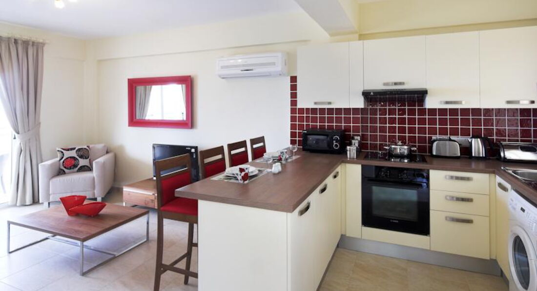У нас был номер Studio - шикарно, полностью оборудован для жизни (стиральная машина, холодильник, духовка, плита, телевизор - есть российские каналы, чайник и всякая кухонная утварь) - на тот случай если захотите поэкономить и готовить себе дома.