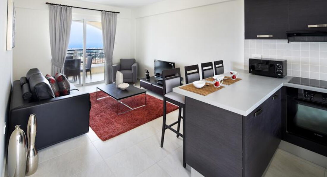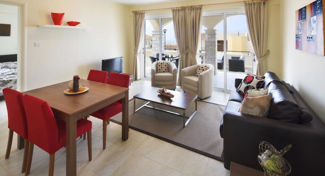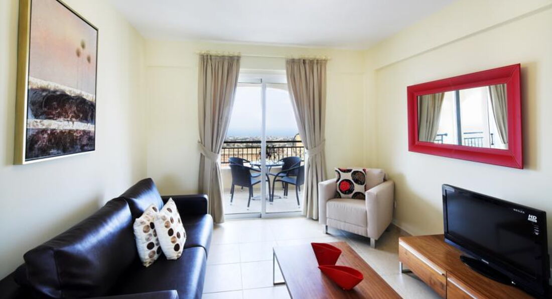 Отдыхали вс 18.09.16 по 24.09.16. Отзывы об отеле прочитали уже после того, как купили тур. Турагент не удосужилась сообщить нам, что до моря 11 км. Но вообще как оказалось после это не проблема, а даже плюс для нашей семьи. Хотели отдохнуть от суеты. Почитали отзывы, забронировали машину и полетели. Сразу предупрежу летели чартером Анекс-тур и Пегаса. Нашим туроператором оказался Анекс и вот какие преимущества нам это дало. Из Ларнаки до Пафоса нас везло такси: старый, глазастый но добротный Мерседес с кожаным салоном, кондиционером и вежливым киприотом в качестве водителя. Другой туроператор заказал автобус. В итоге наши соотечественники добрались до отеля на два часа позже нас. Обратно нас забирала семиместная газелька-мерседес на семь мест. Забирали только пару из Лимасола. Ездили с ребенком двух лет. Разместить нас должны были в 12.00, приехали мы в 8.00. В итоге разместили в 10.00, увидев ребенка на руках. И это бонус со стороны отеля. Номер был по другую сторону от ресепшн. С быстрым доступом к внутреннему бассейну и прекрасным видом на город и море. В номере есть все: кухонный уголок, ванная, кровать, диван,журнальный столик, шкаф с бесплатным сейфом и гладильной доской, прикроватная тумба. На лоджии сушилка и столик со стульями. Из кухонной утвари тоже все есть: ножи, столовые приборы, разделочные доски, тостер, холодильник, стиралка, духовка, плита, раковина. Вся необходимая посуда для готовки и еды и даже чуть больше. Из моющих средств - мыло и средство для мытья посуды. Муравьи есть, но они не агрессивные. Главное в отношениях с ними все начисто убрать и мусор выкинуть. С сервисом у них напряг. Ну очень не притязателен. Небольшую, работающую территорию отеля три уборщицы убирают с 9.00 до 16.00. Отель скорее всего строится. Номерной фонд большой, но эксплуатируется не весь. Из питания брали завтрак. Он не плох: два вида хлеба, яичница, два вида колбас, ветчина, сыр, бобы в томате, поджаренный бекон, творог с медом и немного фруктов одного вида. У меня дома такого разнообразия нет, поэтому я не придиралась))) Столы после ночных посиделок убирать начинают неохотно и к самому моменту прихода отдыхающих на завтрак. Обед, ужин готовили сами, либо ели в кафе и ресторанах. В бассейне вода холодная. Сами бассейны слегка потрепаны. Убирают номер в принципе каждый день, если вешать табличку с просьбой об этом. Но в какое время - не угадаешь. Хоть в три часа дня, когда вы обедаете. Персонала как такового не видно, кроме уборщиц, их может быть и не видно, но бывает прекрасно слышно)))) Машину арендовали на шесть дней с доп.страховкой, которая не понадобилась, в итоге получилось 31 евро в день. Если знаете английский, то арендовать машину можно на месте в Ларнаке или Пафосе в районе 22-26 евро/день за наш автомобилик. Автомобиль у нас был Мазда Демио. Доставили в отель без нареканий, точно в срок, забрали - также. Ни разу машина не подвела. За шесть дней заправились на 45 евро. Съездили на север острова, по святым местам в центре острова и через Лимасол вернулись в Пафос. Есть, что посмотреть, но планировать нужно заранее и детально. Всех святых мест и местную кухню за раз не охватить. В Лимасоле общий пляж - узкими полосками. На платный пляж не попали - не смогли найти. Песок черный, вулканический, непривычный. Парковка в основном платная, но на совести у водителя, как мы поняли. Талончики об