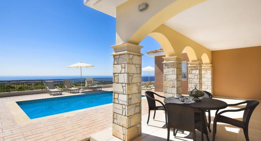 Three Bedrooms Villа (128 кв.м., макс. 8 чол.) - 3 спальні та вітальня, тераса та сад, 2 двоспальні ліжка, міні-кухня, 2 ванні кімнати з ванною та душем, басейн.