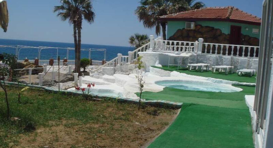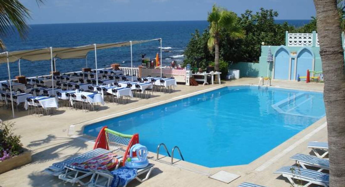 Отдали за путевку по 25 с человека, что просто немыслимо для данного отеля (хибары). Поселили в номер с видом на море и понтон, в номере 4 кровати, грибок, отваливается штукатурка, ржавчина везде, белая дверь, точнее когда то бывшая белая дверь черного цвета. На металлическом облезлом столе выцарапаны следующие фразы :" бегите отсюда, пока не поздно", "спасайтесь". Понтон застелен зеленым облезлым ковролином, на 50% прожженным бычками. Жуткий вход в море - лестница на последнем издыхании, просто страшно. Чистую воду мы покупали в магазине, т.к. кулер всегда был пустым, мы просто не успевали ее налить. На пляже пили свой привозной алкоголь из Duty Free, мусорок негде нет, работники отеля сказали оставлять пустые бутылки прям там- мол сами уберут, ок. На следующий день видела как из моей бутылки медового джек дэниэлся на баре они разливали свое местное "пойло". АНимация- это вообще сказка, ее тупо нет. Наш "аниматор" отельный зазывал всех на дискотеку в город, время отъезда с дискотеки было заранее оговорено. И вот стоим мы в 4 утра ждем его возле дискотеки, чтобы ехать домой, а его все нет, простояли мы так пол часа, и тут заявляется это чудо в невменяемом состоянии, причем речь идет не о алкоголе, глаза по 5 рублей, его всего трясет( видимо экстази в Турции неособо).Вообщем меня ели остановили, чтоб его не разорвать на части. Из еды в отеле- много капусты макарон и помидоры, и это все господа!!