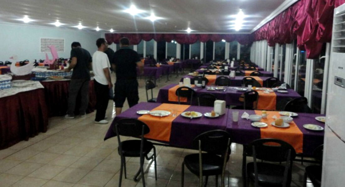 Питание в отеле очень скромное. Но на то даже можно закрыть глаза. Давали рис 2-х видов, макароны, каша рисовая на завтрак, помидоры, огурцы в различных вариациях. Мясо было крайне редко, если и было его тут же расхватывали такие же голодные туристы. Столовая также чистотой не отличалась. Скатерти грязные, посуда не моется, вся в щербинках. Даже не приятно кушать в таком месте было.