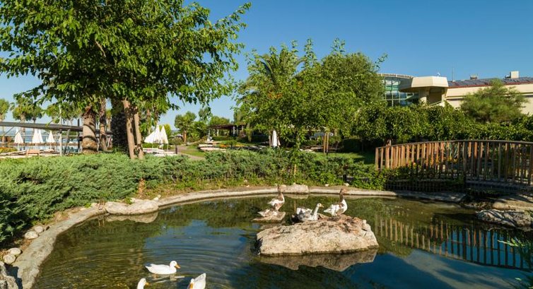 Мы отдыхали в этом отеле с мужем, отель понравился. Заселение прошло быстро, домик оказался хорошо расположен, рядом с пляжем и недалеко от всех ресторанов и мест развлечений. Отель зеленый, детям будут интересны животные, которые находятся на его территории, различные птицы водоплавающие, мы с мужем видели даже ежика, который прогуливался по лужайке недалеко от детского центра. Персонал в отеле очень дружелюбный, все улыбаются, по русски, правда никто не разговаривает. Кухня в отеле не напрягает, блюда вкусные, много овощей, мяса в разном виде, рыбы, фруктов, очень приятное розовое вино. Море чистое, пляж галечный, кто не привык ходить по камушкам - нужна специальная обувь, в море можно спуститься и с пирса, поэтому проблем нет. Если вы хотите просто спокойно отдохнуть и насладиться отдыхом без лишних напрягов, то это отдых для Вас! Отель понравился, хочется туда вернуться еще раз.