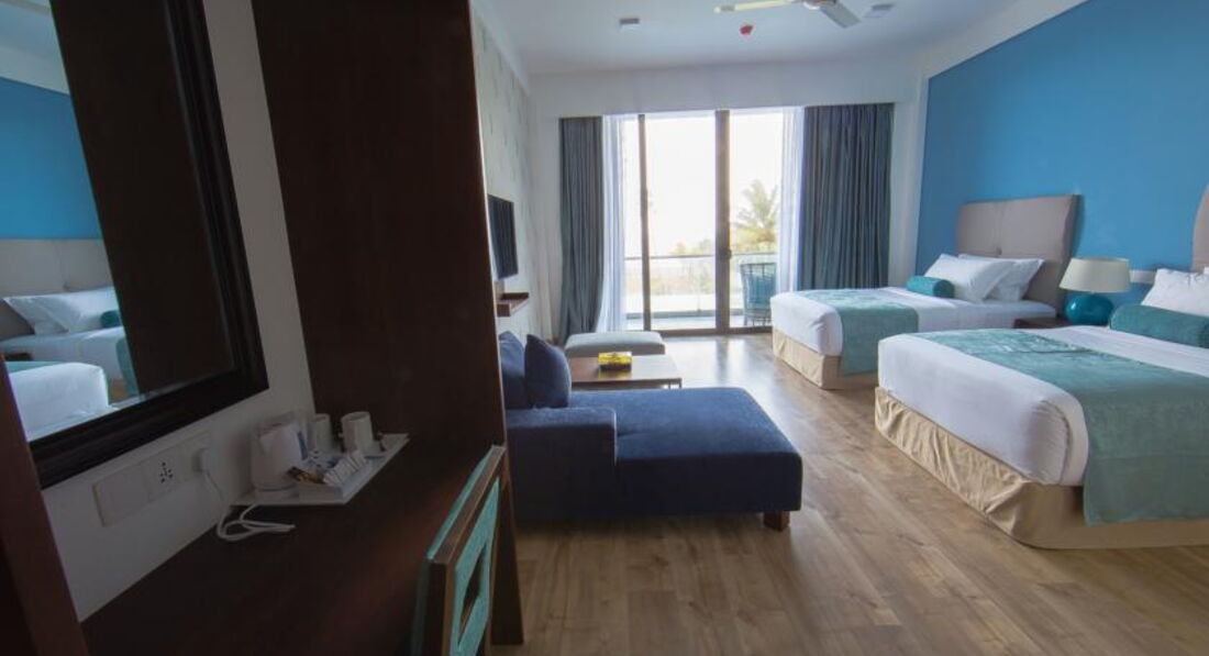 При бронировании оператор неверно указал номер с одной кроватью. Отель на встречу не пошел и другой номер не дал. Аргументоровав, что якобы номеров нет, позвонидли гиду, он сказал будет один номер на следующий день, но нам предложили только с видом на сад. Проверяйте свои бронирования. В отеле все номера категории люкс и выше. Номера с видом на сад выходят окнами на трещащий трансформатор и железную дорогу. Советую номера с видом на океан.