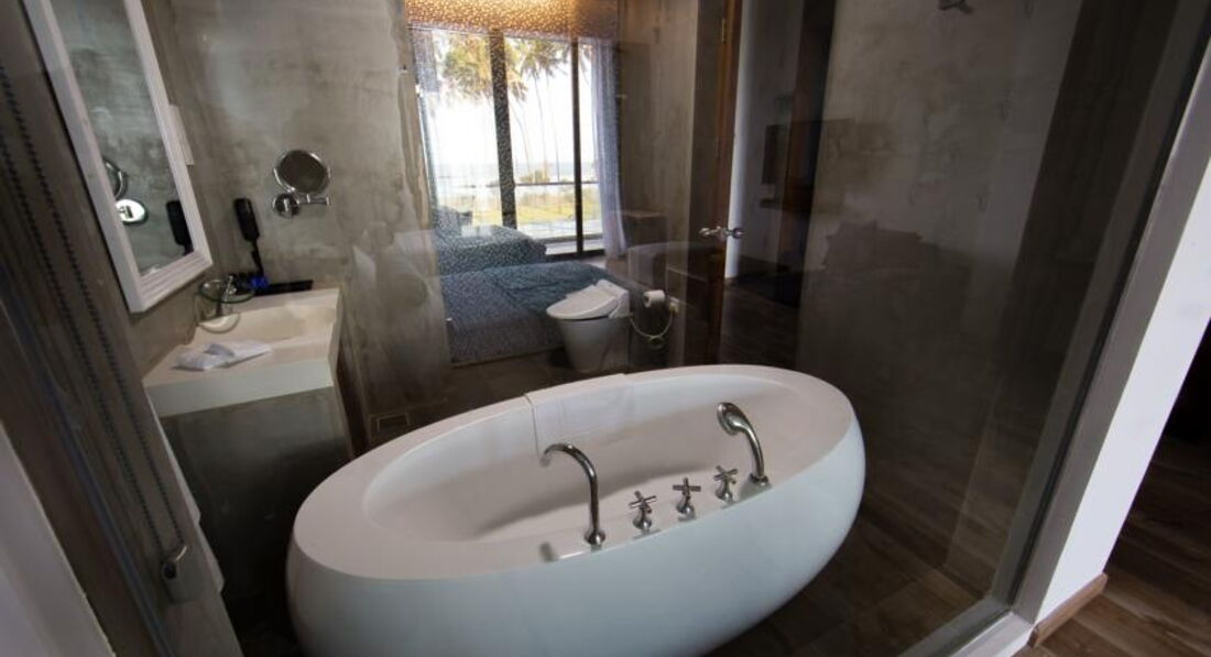Видели отель в рекламном туре, отель новый, номера оформлены дизайнером, оформление во всех номерах разное, очень большие, высокие потолки, качественное питание адаптировано под европейские вкусы, хотя есть как и везьде на Шри Ланке прянные блюда. Территория отеля не большая, но учитывая то, что пляжи на Шри Ланке муниципальные, загорать и плавать туристы могут идти в любую сторону. Есть достаточно большой бассейн, и рыбный ресторан. Отель оставил приятное впечатление)