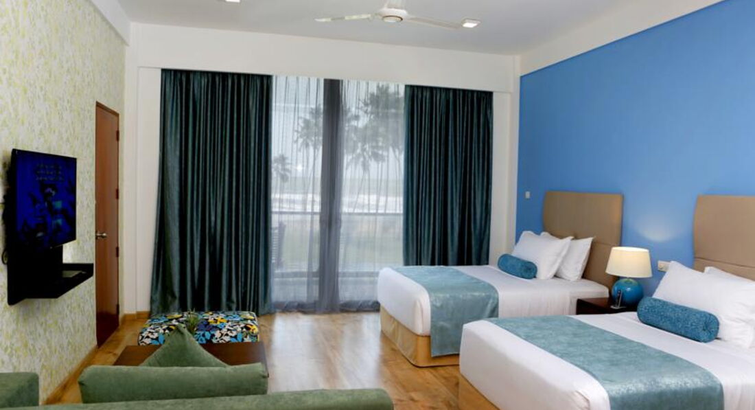 Номера большие, удобные, Особенно порадовал унитаз с пультом управления. Вай-фай берет в номерах хорошо. Телевизоры ЖК большие, но русский канал один. У нас был номер с видом на море. Убирали вполне нормально, правда то утром, то после обеда, Предугадать время уборки номера невозможно. Могут убирать и при вас, если разрешите, или спросят во сколько приходить. Мы английский знаем в пределах школьной и вузовской программы, но понимали в отеле все друг друга хорошо. Персонал усиленно учит русский язык, И к русским относятся хорошо. И все местные и в отеле, и в городе при общении повторяют, что Россия сильная страна, а Путин вообще молодец. Не поверите, но как-то сразу приятно становится. В общем все спокойно, а то как-то пугали нас, что там на улицах не спокойно. Ланкийцы улыбчивые и хотят общаться, не бойтесь их. Претензий к отелю нет, все понравилось. Кстати нам задержали вылет домой. Рейс ведь чартарный. В Москве меняли самолет, там какие-то неполадки были, поэтому вылет из Москвы задержали почти на 5 часов (бедные люди в Домодедово ждали). Мы следили по онлайн табло за вылетом рейса из Москвы. И, слава богу, мы ждали в отеле, т.е нас не забрали как было запланировано. Все решалось спешно, по телефонам. С нами в отеле был гид Дживака от принимающей стороны. И мы не мучились в аэропорту. Нас даже покормили в отеле ужином. Теперь к туристам хорошо относятся. Спасибо Coral trаvel, не подвели. Может, конечно нас просто много было - все те же 27 человек, не знаю. Так, что отель советую. Да и страну тоже, Я, думаю, что можно еще вернуться на Шри-Ланку. Еще не все просмотрено.