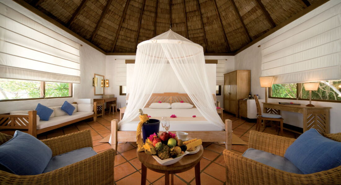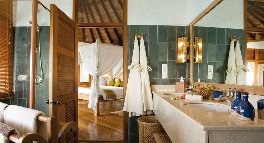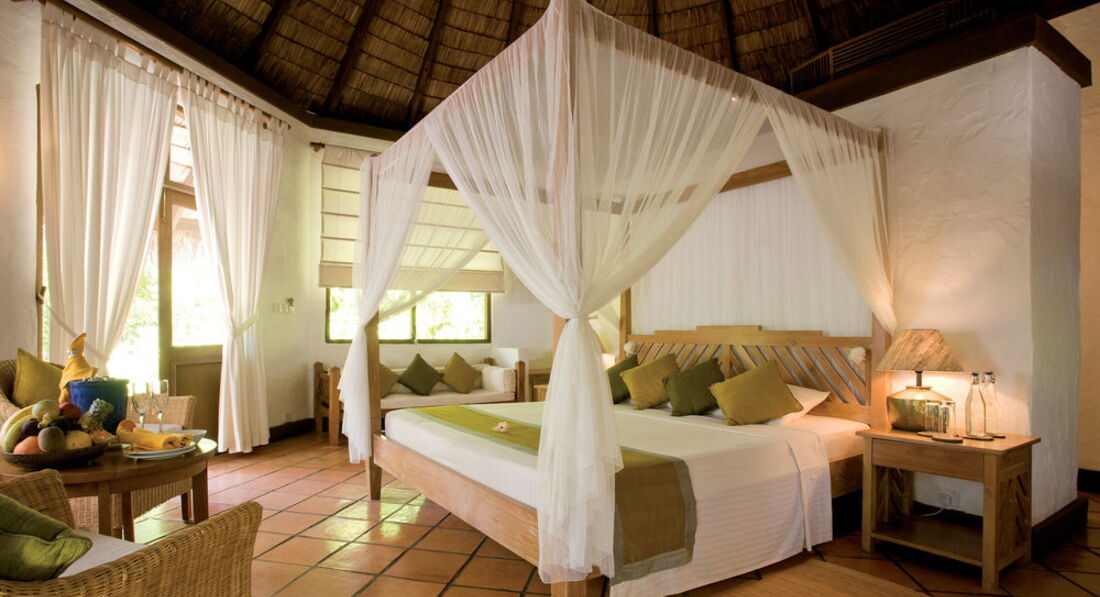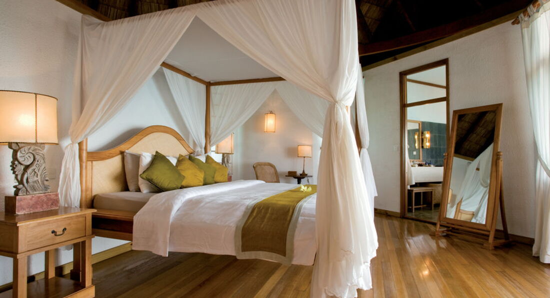 Бунгало довольно простое, не соответствует 5*, на балдахине над кроватью были пятна, светильники в пятнах, на раковине скол.