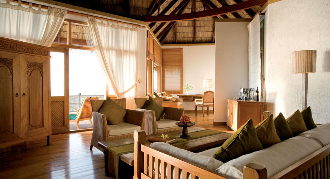 2 Sunset Lagoon Villa (154 кв.м., окремі водні вілли. Спальня, вітальня з антикварними меблями, басейн, ванна кімната з душем і ванною, тераса.).