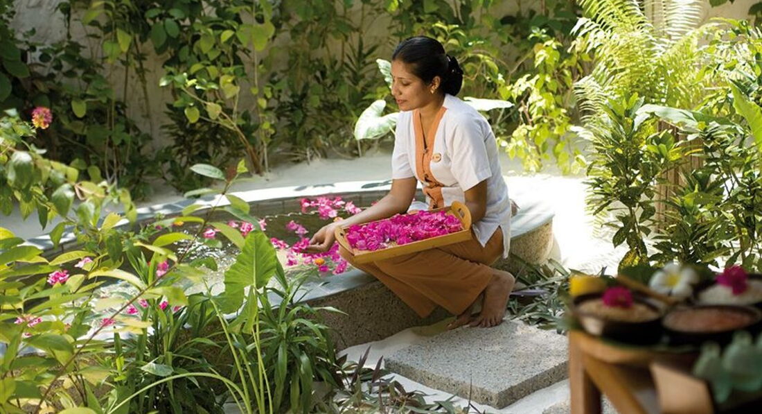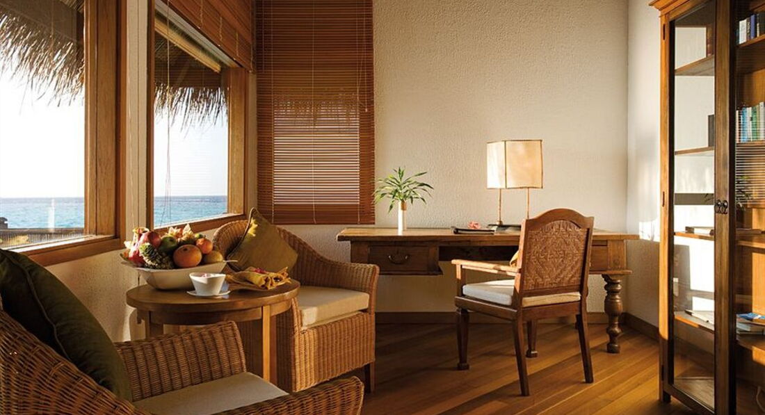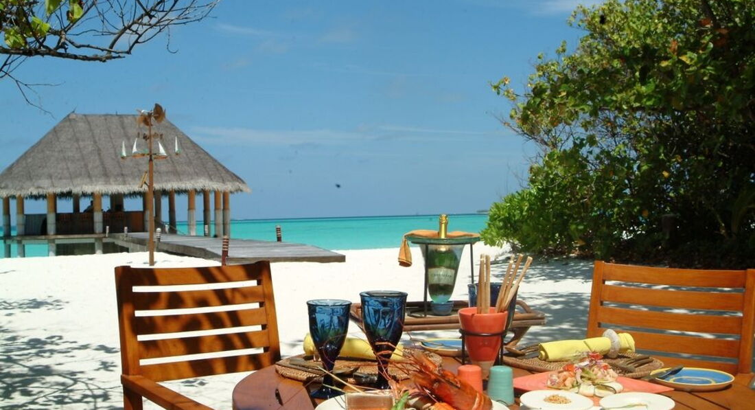 Отдыхали с супругой в сентябре. Отдых великолепен, для тех кто любит побыть одним на белом песке лучше не придумаешь. На острове 100 домиков. При заполненности отеля на 96-100% наличие людей наблюдалось только в ресторане. Гуляя по острову почти не встречаешь людей. Питание(шведский стол) на приличном европейском уровне. Брали FB как самое оптимальное. Все напитки за дополнительную плату. Трансфер до острова гидросамолет(900$ на двоих в оба направления) 15 мин перелет вполне комфортен.На катере говорят 2,5 часа плыть. Нам повезло и во время нашего прибывания был русскоговорящий отельный гид Анастасия(отдельная ей благодарность, контракт у нее до июля 16года), которая помогла во многом разобраться, без знания английского языка туговато там. Она же помогла с местной сим картой и тарифом 15$ за 2Гб думаю для тех кому нужен качественный интернет не столь большая сумма. Интернет есть только на ресепции и то качества ну уж очень сомнительного.(кому он нужен на отдыхе, имейте в виду). Жили в 80 домике, считаю оптимальным вариантом. Но в следующий раз будем бронировать с 47 до 55 там пляжу с белым песком до воды больше))). Напитки в баре и в ресторане на уровне дороже чем в популярных недорогих курортах(Турция Египет) ,но все же не столько высоки как в Европе. При учете цен не забывайте о налоге 10% и 12% кот добавляются к итоговым цифрам в счете. Наличка в отеле не в ходу( все покупки записываются на счет номера) но от чаевых никто не отказывался)))) Москитов на острове нет от них идет обработка, полно песчаных крабов))))Брали свадебную фотосессию, в принципе удовлетворительно, но все же дороговато(550$ за альбом из 30 обработанных фото и диск со 100 фотографиями)