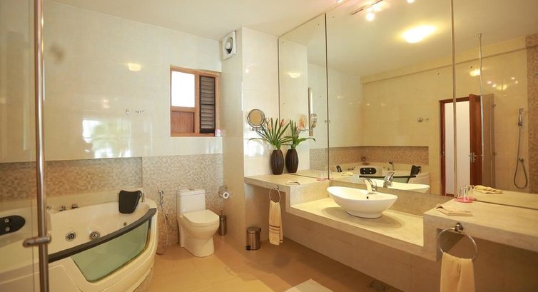 2 Ocean Privilege Master Suite - просторий люкс, розташований на 2 поверсі, обладнаний балконом з чудовим видом на океан і невеликим диваном. Власна ванна кімната має гідромасажну ванну і тропічний душ і халати та капці.