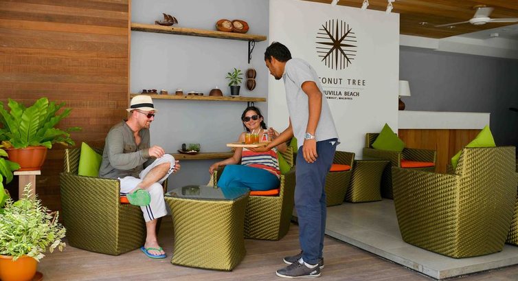 Екологічний готель Coconut Tree Hulhuvilla Beach з видом на море та приладдям для барбекю розташований на острові Хулхумале, за 500 метрів від лікарні Хулхумале. Відкритий у 2015 році. Підійде для спокійного та спокійного відпочинку.