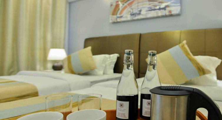 • Family Room зі смаком оформлений відповідно до сімейного відпочинку. Номери просторі і дозволять вам насолодитися чудовим відпочинком із сім'єю та друзями. Номер обладнаний великим двоспальним ліжком або двома одинарними. Ванна кімната з душем. Просторий балкон із шезлонгом для відпочинку. Безкоштовна пляшка води. Місце для додаткового ліжка