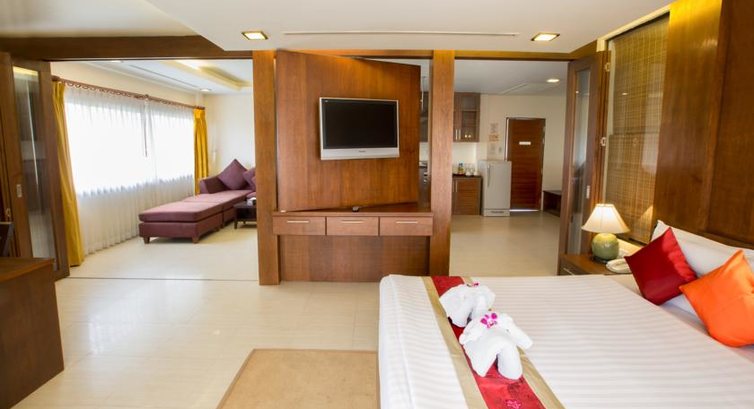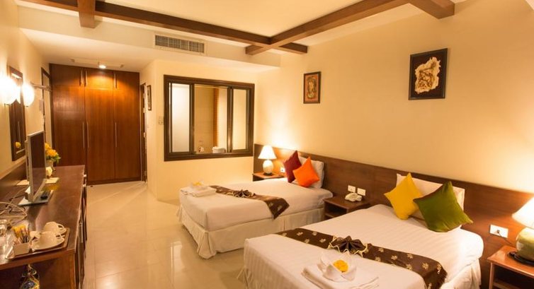 Отдыхали с мужем в этом отеле с 24 по 31 декабря 2014 года - все понравилось!!!! Заселили нас без всяких доплат в 10 утра (правда при выселении в 12 попросили освободить номер, но это не проблема, у них есть помещение для чемоданов, а в это время можно и погулять). Персонал очень дружелюбный, но по-русски не говорит - несколько слов только. Интрнет есть только на ресепшене и в этой зоне. Завтраки нам понравились - около 8 блюд на горячее + омлет или яичница, овощи-фрукты, чай-кофе, в общем - поесть можно) Завтрак за 8 дней ни разу не повторился, что радует. Мы жили в номере стандарт с выходом окон на улицу (номер 119), покупали через букинг за 2 дня до заезда...в общем номер как номер, да - телевизор не плазма, но 2 русских канала есть...если с детьми, то шумновато с улицы будет, но нам это вообще не мешало даже вечерами сидели с мужем на балконе и смотрели так сказать на улицу. Номер каждый день убирали + полотенца меняли. Кстати, очень хороший шампунь у них там или в сочетании с водой, но волосы классные были! 2 бутылки воды каждый день бесплатно! Мини-баром не пользовались, т.к. в шаговой доступности много магазинчиков, которые работают круглосуточно + вечерний рынок (с 16 до 24 работает), где можно много вкусняшек купить, лично мы покупали сомов - ну очень вкусные (100 бат/1 шт, если после 8-9 вечера приходили, то по 80 бат/шт). Все экскурсии покупали через [удалено модератором]! Всеми экскурсиями были довольны!!! Вообще отель очень тихий! Выходишь на улицу - там жизнь кипит, а лежишь у бассейна - тишина, спокойствие, пение птичек и музыка))) Класс!!! На море мы практически не ходили, в первый день - посмотреть (на пляже очень много народа, яблоку некуда упасть), пару раз вечерами просто пройтись босиком и в последний день перед отъездом, но на пляже мы не купались. Так что если рассматривать местоположение отеля относительно моря - да, 5 мин пешком, но практически все ездили на другие пляжи. Курс обмена валюты в отеле не выгодный, лучше выйдите из отеля - направо метров 50 и там обменники начинаются, меняйте там, лучше вечерами и сравнивайте цены. Муж случайно разбил стакан, при сдаче номера попросили 55 батов за него, на мою просьбу оплатить картой Виза мне сообщили цену за стакан 500 бат!!! была неприятно удивлена этому! Кстати про карты, очень мало магазинов принимают карты к оплате, лучше везите наличку! Есть сейф в отеле на ресепшене, я туда сразу все доки и деньги сдала, но он до 9 вечера работает, так что рассчитывайте время! От аэропорта мы ехали на такси (примерно 850 бат) - выходите из аэропорта и направо до конца, налево - будет обменник, но курс там не выгодный. Такси в аэропорт заказали прямо на ресепшене - 800 бат (т.к. 2 человека было). Кстати муж распробовал тайский ром - вкусно! Он есть практически во всех магазинчиках, бутылка 250 мл, стоит 135 или 155 бат, разницу между двумя сортами не ощутили. Пиво - 55-80 бат/бутылку, вода - от 5 бат за 0,5 л ... в общем, первый раз, когда мы не хотели уезжать!!! Были на Кубе, в Тае понравилось намного больше!!!