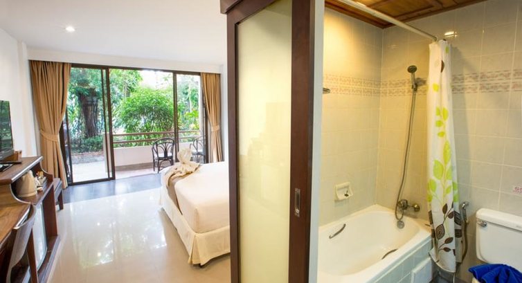 Заранее посмотрев фотографии с сайта отеля был заказан номер категории Delux (разница в пределах 3000 на две недели). Нам предоставили номер на первом этаже напротив центра бассейна. Очень удобный номер, просторный, недалеко до бассейна. Отель достаточно тихий - так что близость бара и бассейна не мешала совершенно. В номере было все необходимое - свежие полотенца каждый день, пляжные меняли без вопросов по необходимости, умывальные принадлежности. Порадовало наличие отдельно большой ванны и отдельно душа. Хотя окно с матовым стеклом между санузлом и комнатой весьма сомнительная затея. Включил свет в ванной и как на витрине. Большая кровать как и заказывали, была цельной, а не как во многих отелях составной из двух. Телевизор с одним русским каналом - но кому он нужен в отпуске? :-) Не понравилось что интернет был платным и со странной тарификацией - либо час, либо 24 часа, не удобно и дороговато, но и он не особо часто нужен. кондиционер работал исправно все время, не особо шумел. Сантехника достаточно новая, ремонт свежий. Минибар работал, и пополнялся по необходимости по ценам аналогичным соседнему 7-11. Сейф в номере использовался активно и без проблем все 15 дней. В номере даже был зонтик, несколько раз пригодившийся за время отдыха.