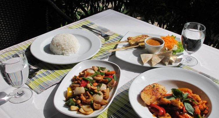Брали тур только на завтраках. Еда была в достаточном количестве и вполне разнообразная. Готовили омлеты, вареные и жареные яйца. Традиционный жареный рис с курицей и без, сосиски, бекон, тосты. Свежие овощи. Бананы, арбузы, дыни, и всякие экзотические местные фрукты. Я выбираю отели по отзывам о качестве и количестве питания, здесь летел в этом плане наугад и не пожалел. Несколько раз обедали в отеле - рис с курицей, шашлыки. Еду в отель носят из соседнего ресторана, цены ниже городских, можно заказать еду в номер, но работают только до 22.