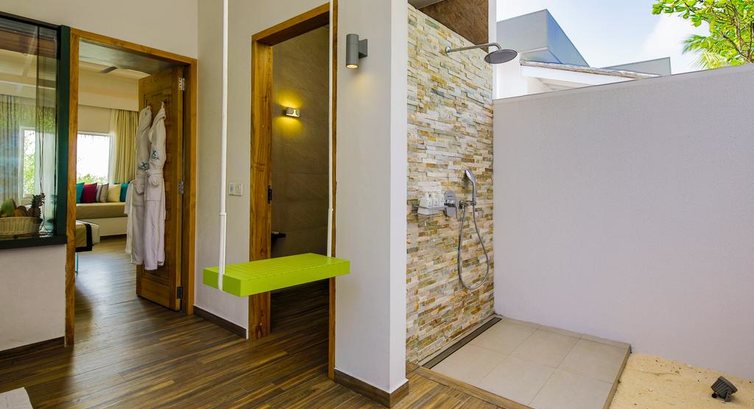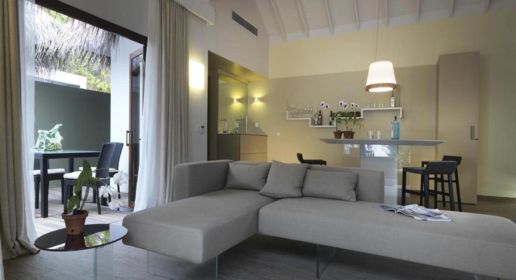 Типи номерів: 50 Beach Villa (50 кв. м) 10 Family Beach Villa (100 кв. м) 25 Beach Suite (70 кв. м) 5 Beach Suite with Pool (70 кв. м) 40 Lagoon Villa (65 кв. м) 15 Lagoon Suite (70 кв. м) 5 Lagoon Suite with Pool (90 кв. м)У номері: • кондиціонер • вентилятор • ліжко King-size • ванна кімната з ванною та душем • фен • телефон • міні-бар • сейф • ТБ • набір для приготування чаю та кави • диван • лежаки • тераса для засмаги • музичний програвач/DVD-плеєр • праска та прасувальна дошка